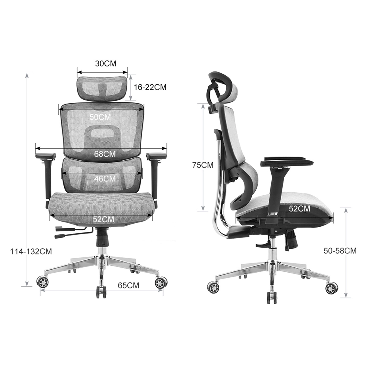 - Materiał: - Siatkowe oparcie, siedzisko z tkaniny z gęstą pianką, miękkie podłokietniki pokryte powłoką PU,