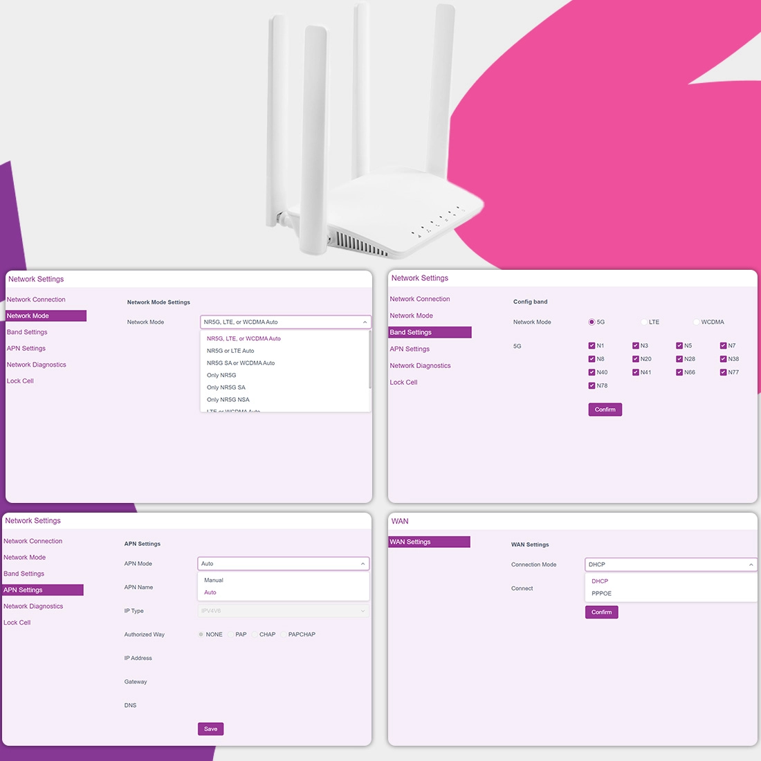 📡 Cztery zewnętrzne anteny – zapewniają mocny sygnał i stabilne połączenie 5G oraz Wi-Fi