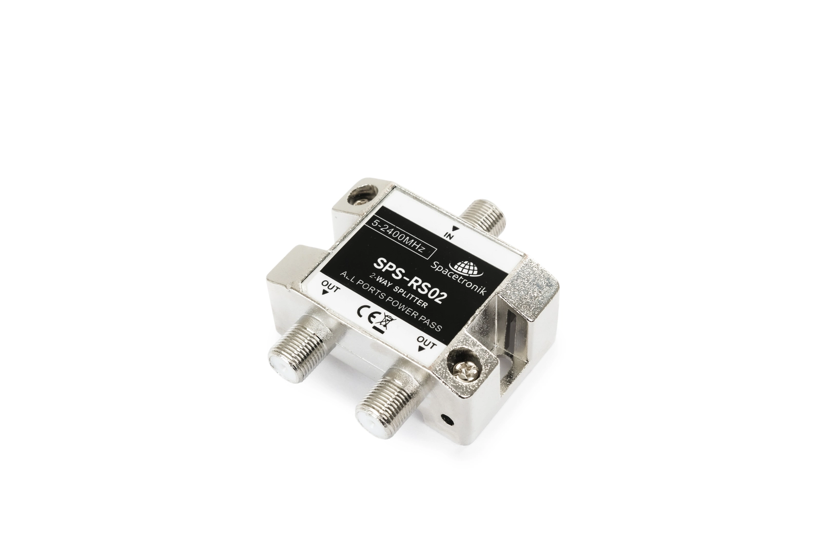 Wysokiej jakości małostratny ekranowany splitter, (rozgałęźnik sygnału telewizyjnego), posiadający 1 wejście i 2 wyjścia.
