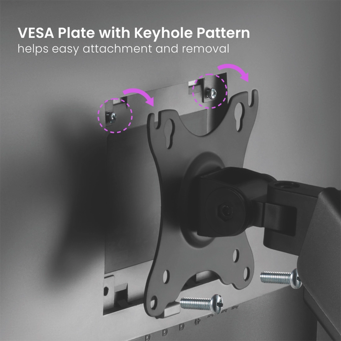 Uchwyt ścienny do monitora Spacetronik składa się z wytrzymałego połączenia stali, aluminium i wysokiej jakości plastiku, gwarantując niezawodną stabilność. Wyposażone w mechanizm sprężyny dla idealnego zbalansowania wagi ekranu, wspiera monitory o wadze od 2 do 9 kilogramów i przekątnej od 17? do 32?, zapewniając uniwersalność dopasowania do Twojego monitora.