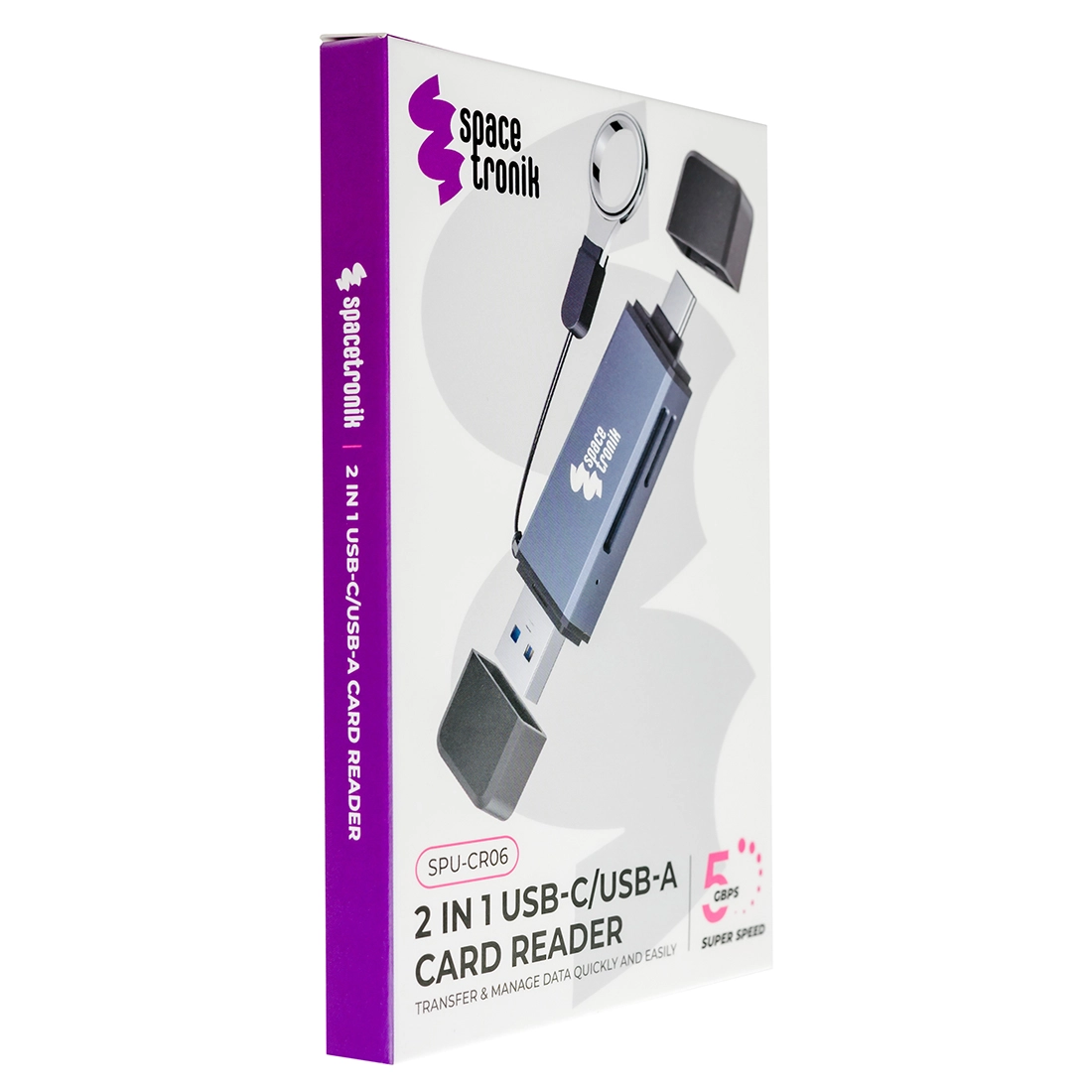 Masz kilka kart pamięci, zdjęcia z wakacji na microSD i ważne pliki na karcie SD, ale Twój laptop ma tylko USB-C? Albo jeszcze gorzej – tylko USB-A? Spacetronik SPU-CR06 rozwiązuje ten problem w prosty i sprytny sposób. To kompaktowy adapter, który łączy dwa złącza – USB-A i USB-C – z dwoma slotami na karty: microSD oraz SD. Dzięki temu z łatwością podłączysz go do niemal każdego komputera, smartfona czy tabletu, niezależnie od portów. Solidna aluminiowa obudowa chroni wnętrze przed uszkodzeniami i sprawia, że urządzenie wygląda nowocześnie i profesjonalnie. Jeżeli zależy Ci na wygodnym, przenośnym i uniwersalnym rozwiązaniu do odczytu kart pamięci, to trafiłeś idealnie.