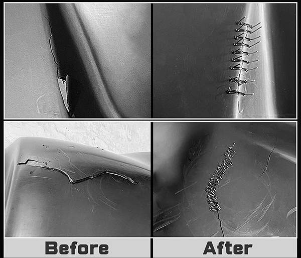 Nasz zestaw do spawania tworzyw sztucznych jest wyposażony w cztery rodzaje zszywek, w łącznej ilości 800 sztuk. Mogą być one wykorzystane do naprawy zarówno dużych lub zakrzywionych pęknięć, jak i małych lub prostych szczelin, pęknięć zewnętrznych narożników oraz pęknięć wewnętrznych kątów. Zestaw ten sprosta potrzebom spawania różnych kształtów plastiku.