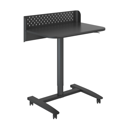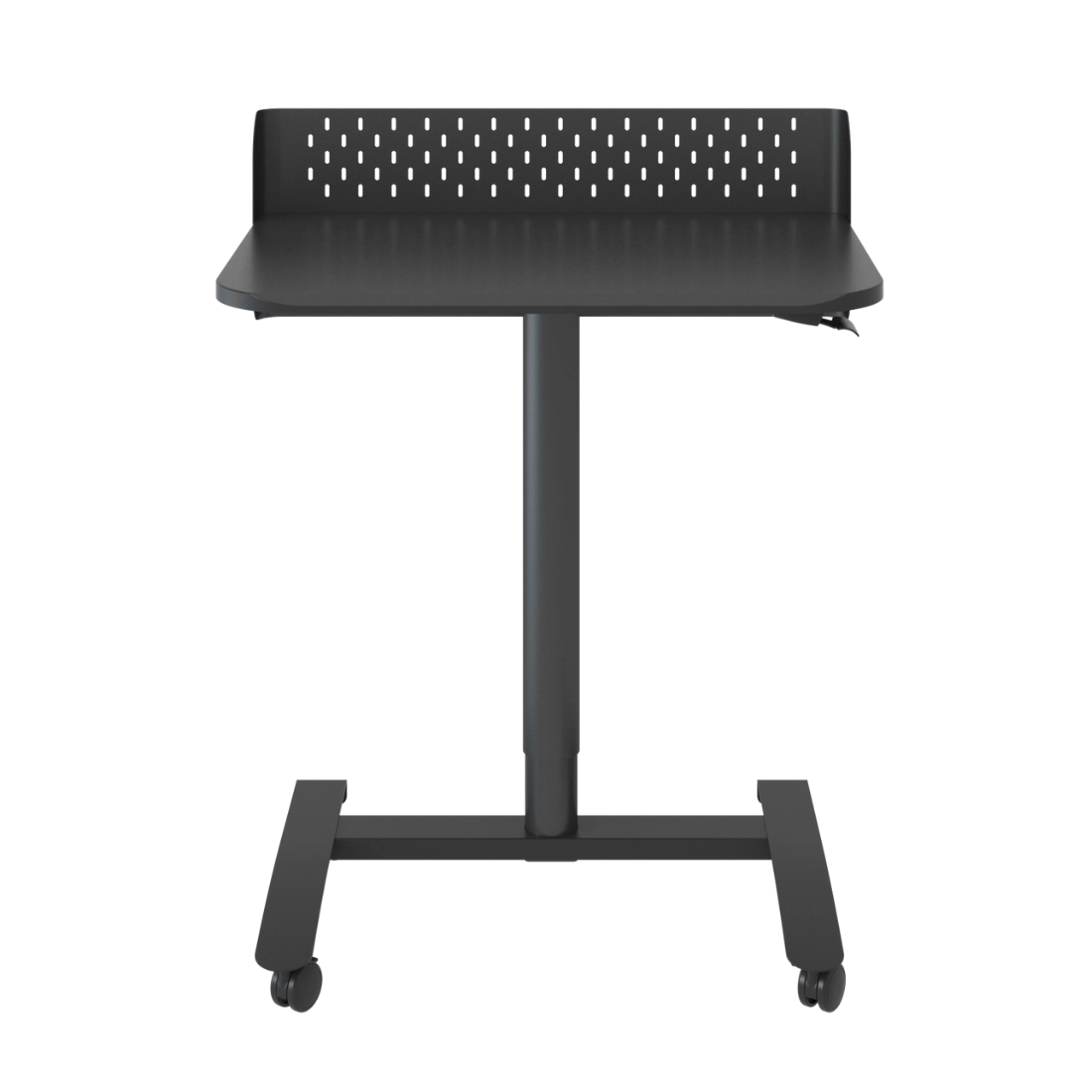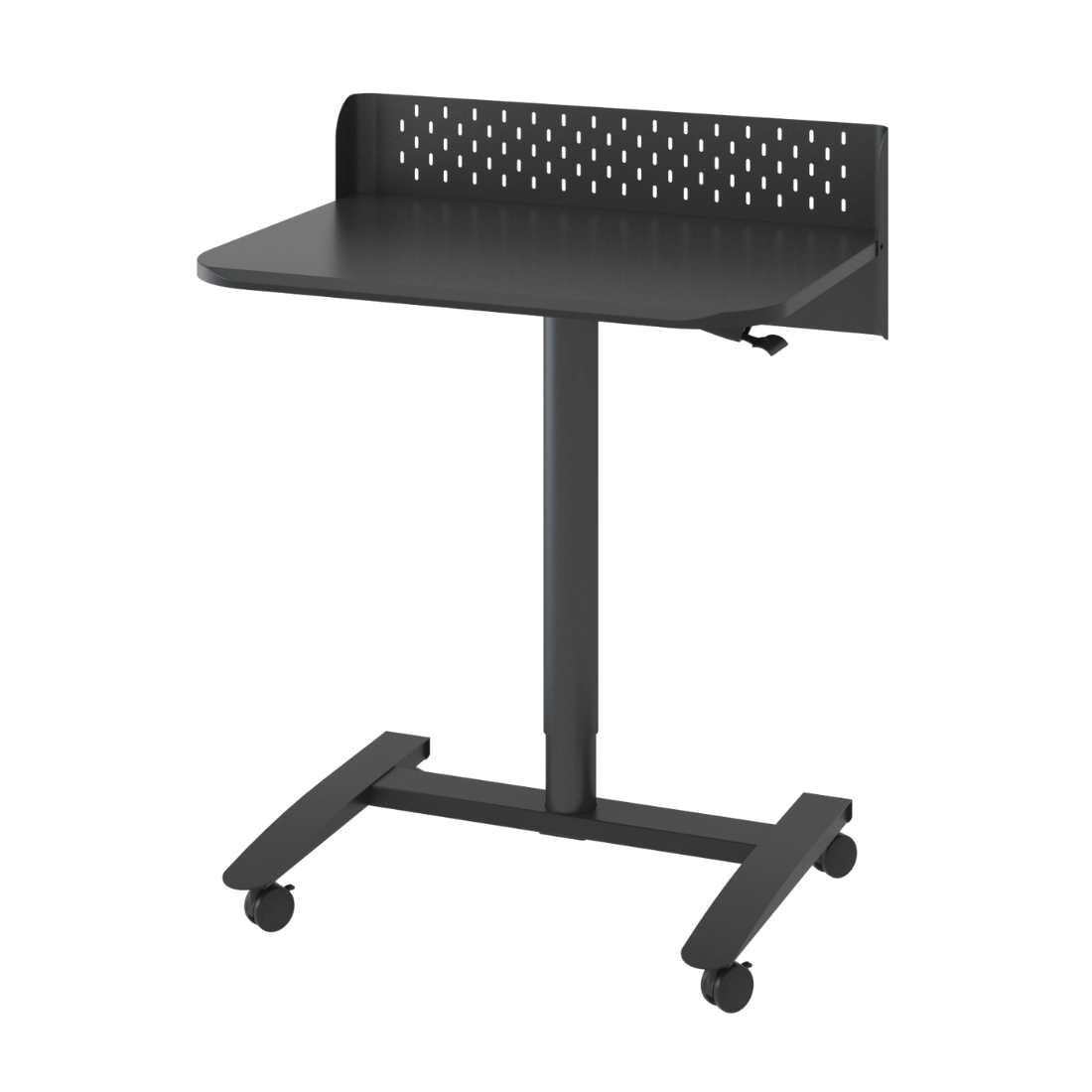 SPR-BUDDY-22-MBB to kompaktowe stanowisko robocze z płynną regulacją wysokości na siłowniku gazowym (jak w fotelu biurowym). Wysokość ustawiasz wygodnie za pomocą dźwigni, dobierając dokładnie takie ustawienie, jakiego potrzebujesz — w zakresie 66,5–105,1 cm. Blat 70 × 50 cm zapewnia praktyczną przestrzeń na laptop, klawiaturę i niezbędne akcesoria, a konstrukcja ze stali z elementami PP oraz blat z płyty wiórowej tworzą stabilną bazę do codziennej pracy i nauki.