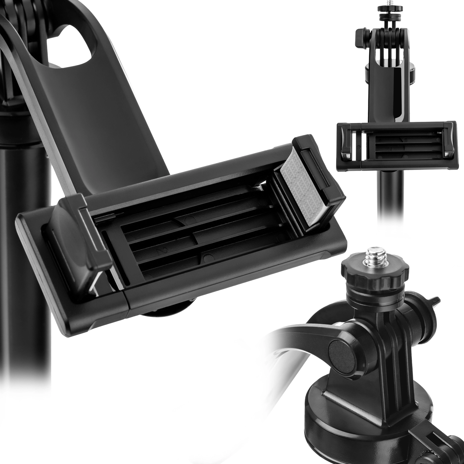 - Uniwersalny uchwyt: Kompatybilny z wieloma urządzeniami, w tym smartfonami, kamerami i lekkimi aparatami.