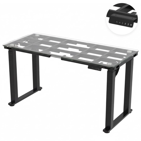 Czytelny wyświetlacz LED pokazuje aktualną wysokość blatu, a przyciski góra/dół umożliwiają precyzyjną regulację. Funkcja zapisu trzech ustawień zwiększa komfort codziennej pracy.
