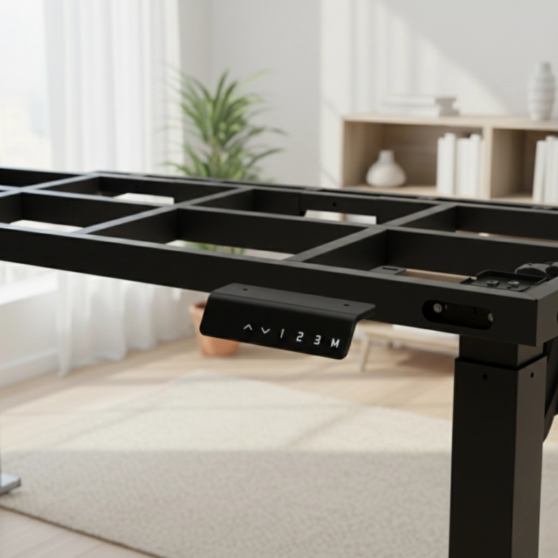 Czteronożna konstrukcja oraz elektryczna regulacja wysokości sprawiają, że stelaż dobrze sprawdzi się w biurach, pracowniach projektowych i zaawansowanych home office, gdzie liczy się stabilność, wygoda i możliwość szybkiej zmiany ustawień.