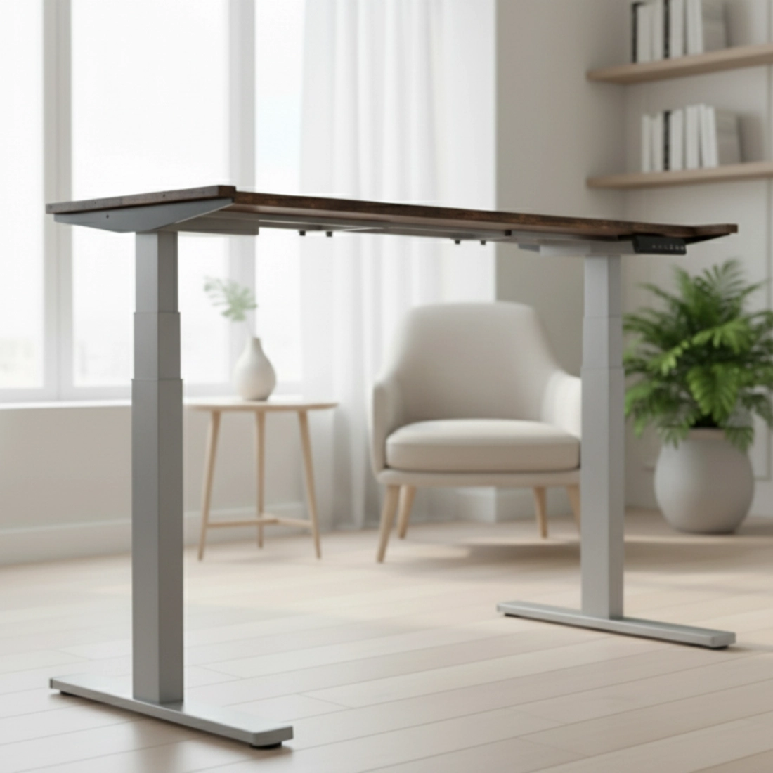 Zaawansowany napęd elektryczny zapewnia szybką i cichą zmianę wysokości, dzięki czemu możesz dostosować biurko bez przerywania pracy. Panel sterowania z cyfrowym wyświetlaczem LED pokazuje aktualną wysokość z wysoką dokładnością, a 3 programowalne pozycje pamięci pozwalają błyskawicznie przełączać się między ulubionymi ustawieniami – na przykład dla pracy siedzącej, półstojącej i stojącej.