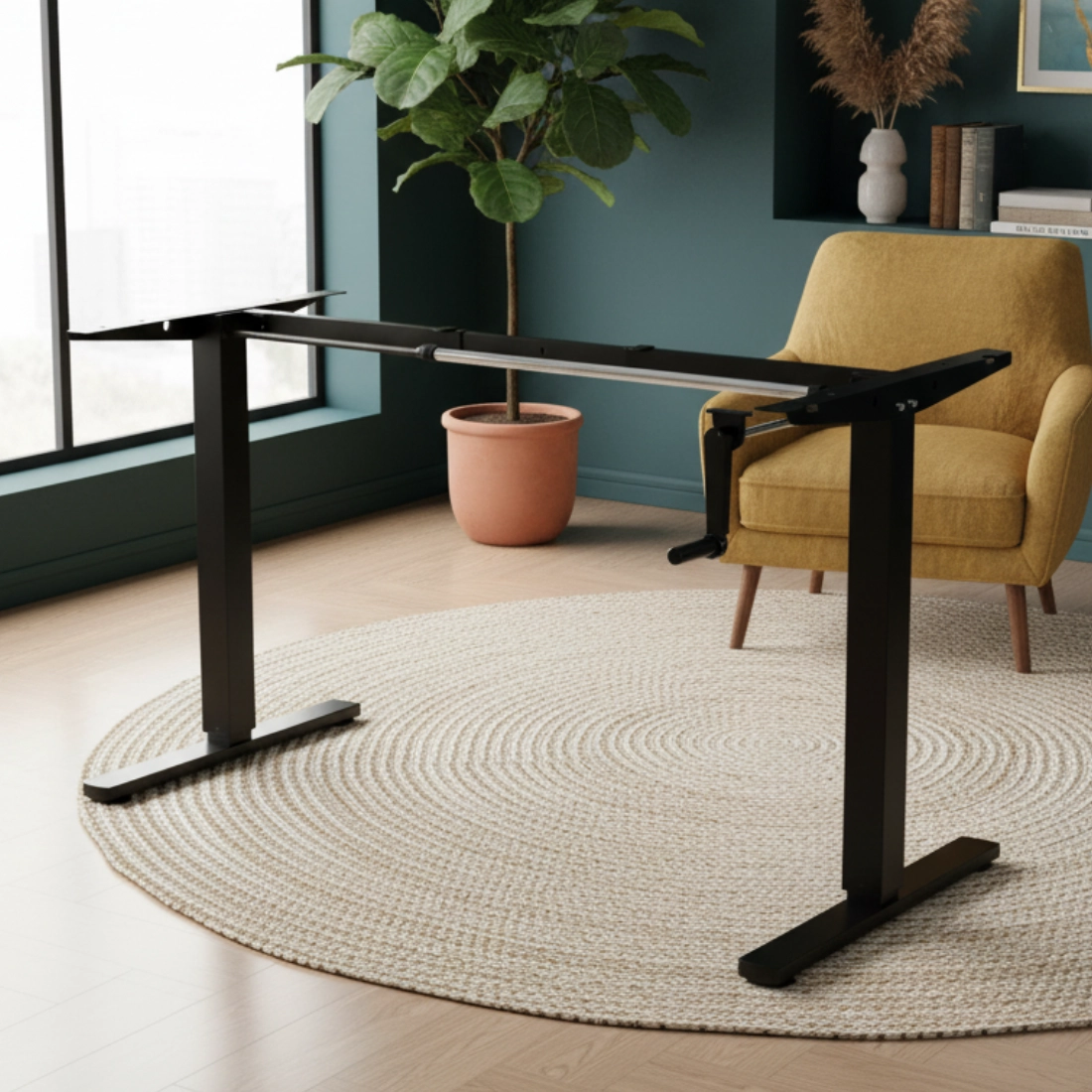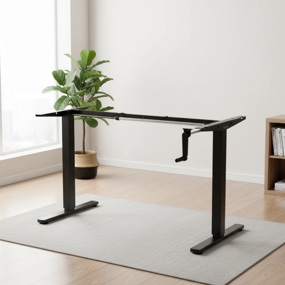 Mechanizm korbowy stelaża SPE112MB działa płynnie i cicho, umożliwiając wygodną zmianę wysokości blatu w ciągu kilkunastu sekund. Brak elektroniki oznacza mniejszą awaryjność oraz niezależność od zasilania – możesz ustawić swoje biurko idealnie, nawet w miejscach, gdzie dostęp do prądu jest ograniczony. Składana korbka po zakończeniu regulacji może zostać dyskretnie schowana, zachowując estetykę całego stanowiska i nie przeszkadzając w codziennej pracy.