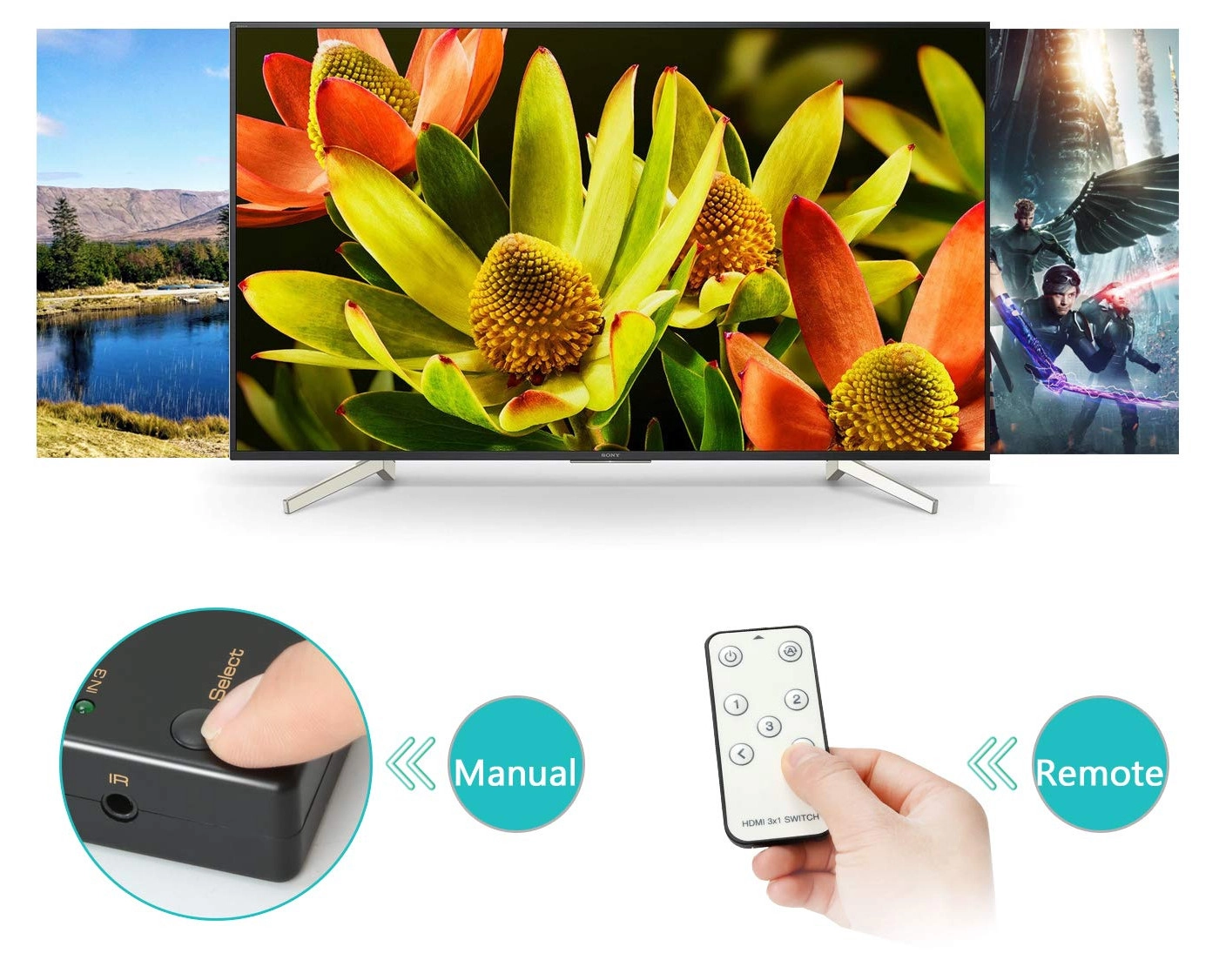 Sumator HDMI 3x1 pozwala maksymalnie zsumować 3 źródła HDMI do jednego wyjścia HDMI obsługiwanego za