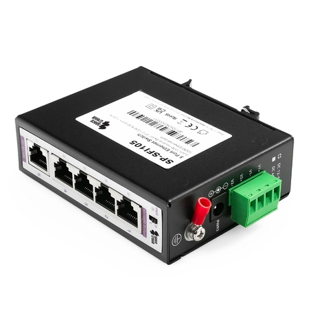 Switch przemysłowy Spacetronik SP-SFI105 to solidny i niezawodny przełącznik, idealny do zastosowań przemysłowych. Oferuje 4 porty 10/100M oraz 1 port Uplink RJ45 100M, które zapewniają szybki i niezawodny przesył danych. Porty RJ-45 z automatyczną negocjacją mogą zapewnić przesyłanie dużych plików, a także być kompatybilne z dowolnymi urządzeniami LAN. Dzięki nieblokującej architekturze przełączania produkt przekazuje i filtruje pakiety z pełną prędkością okablowania, zapewniając maksymalną przepustowość. Łączy praktyczność i solidne wykonanie wraz z wytrzymałą metalową obudową odprowadzającą ciepło. Jest to idealny produkt do wymagających środowisk przemysłowych.