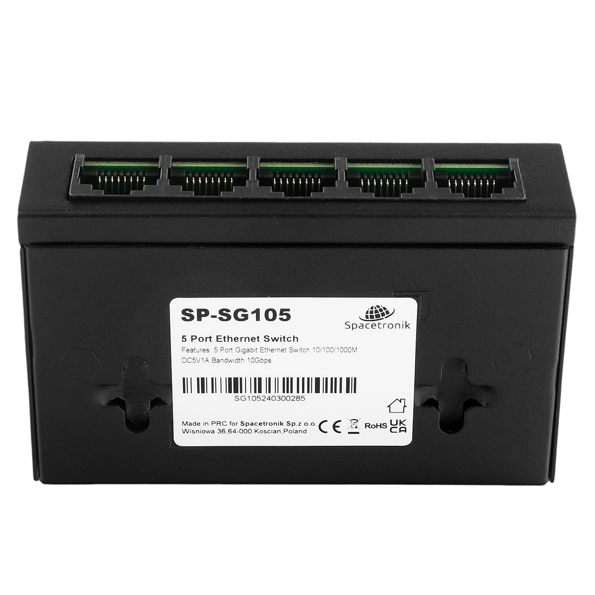 Switch Ethernet Spacetronik SP-SG105 to wydajny i poręczny przełącznik, idealny zarówno do biura, jak i do domu. Oferuje 5 portów 10/100/1000M, które zapewniają szybki i niezawodny przesył danych. Porty RJ-45 z automatyczną negocjacją mogą zapewnić przesyłanie dużych plików, a także być kompatybilne z dowolnymi urządzeniami LAN. Dzięki nieblokującej architekturze przełączania produkt przekazuje i filtruje pakiety z pełną prędkością okablowania, zapewniając maksymalną przepustowość. Łączy praktyczność i solidne wykonanie wraz z niewielkim rozmiarem i estetyczną, wytrzymałą obudową odprowadzającą ciepło. Jest to idealny produkt dla eleganckich pomieszczeń biurowych i domowych.