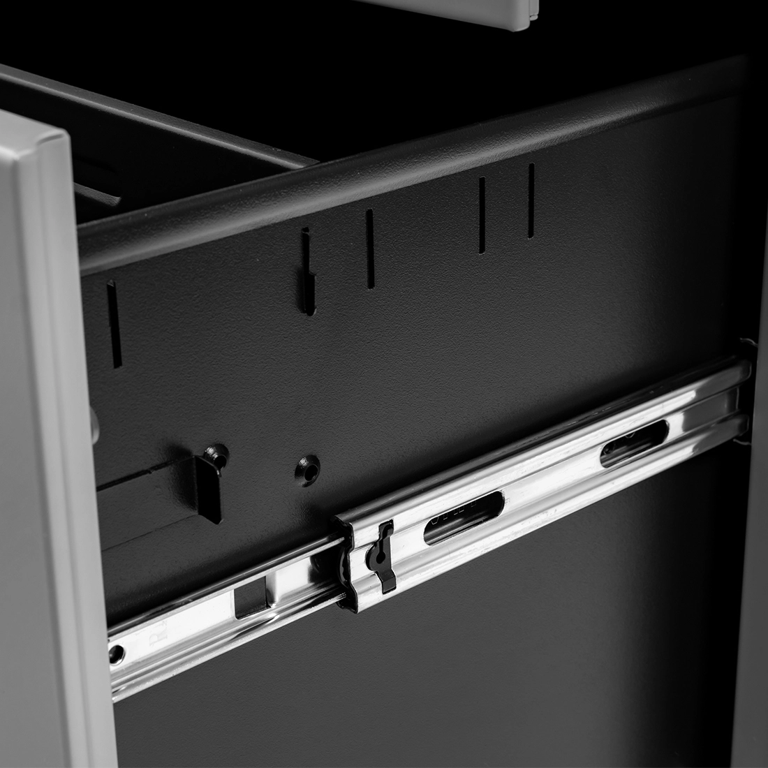 Schludna, dobrze zorganizowana przestrzeń w biurze to absolutna konieczność. Mobilny kontenerek pod biurko to idealne rozwiązanie do przechowywania dokumentów i artykułów biurowych. Wszystko, co potrzebujesz, masz pod ręką. Idealnie nadaje się zarówno do domowego biura, jak i firmy. Szafka jest wykonana z najwyższej jakości stali malowanej proszkowo, co przekłada się na wyjątkową wytrzymałość i stabilność - rozwiązanie na lata. Prosty, nowoczesny design sprawia, że szafka doskonale pasuje do każdego wnętrza. Centralny zamek to gwarancja bezpieczeństwa. Przechowuj dokumenty i wartościowe przedmioty w jednej z dwóch zamkniętych szuflad. Dzięki zintegrowanym kółkom można ją w łatwy sposób przemieszczać. Szafka jest prawie gotowa do użycia, wystarczy, że zamonutujesz kółka (nie potrzebujesz do tego żadnych narzędzi).