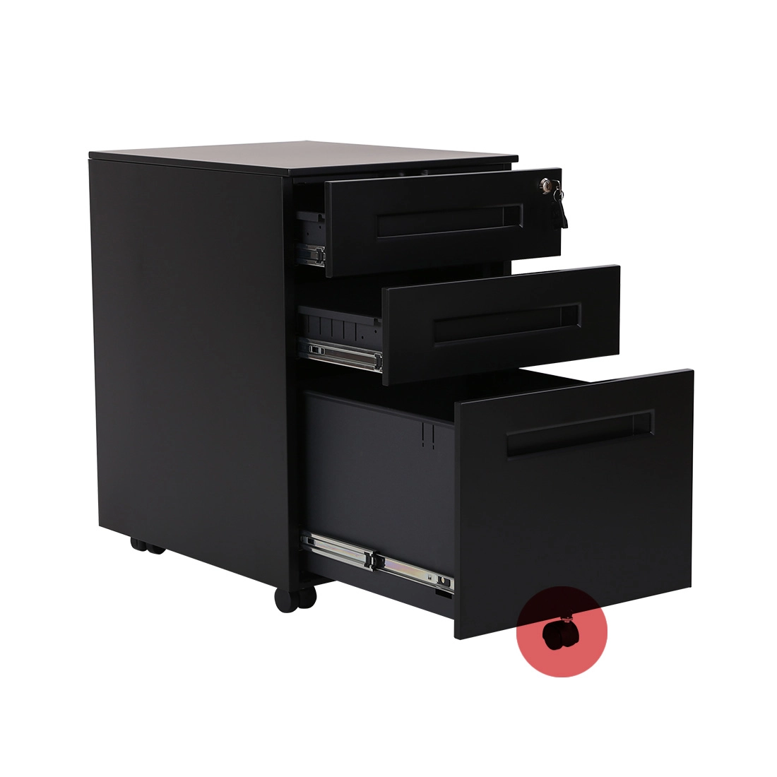Cała konstrukcja szafki 39 cm x 48 cm x 60 cm (szer./głęb./wys.) wykonana jest z wysokiej jakości stali o nośności do 120 kg. Wbudowany centralny zamek zabezpiecza zawartość wszystkich 3 szuflad jednocześnie. Twoje cenne dokumenty nie dostaną się w niepowołane ręce.