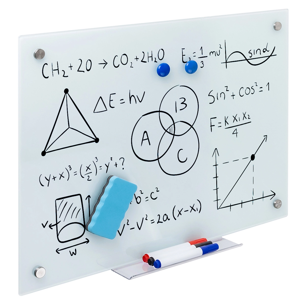 Szklana powierzchnia i 2 sposoby montażu to, niejedyne zalety tablicy SPB-204. Bardzo sporym plusem jest również fakt, że do tablicy możesz przyczepić, co tylko zechcesz. To wszystko z uwagi na magnetyczną powłokę, dzięki której możesz wykorzystać dwa dołączone do zestawu magnesy. Dlatego też jesteś w stanie przyczepiać do tablicy dokumenty, grafy czy też po prostu zdjęcia. Tablica Spacetronik SPB-204 oferuje Ci również gąbkę i 3 markery w zestawie (niebieski, czerwony, czarny). Będziesz mógł bez problemu trzymać je na specjalnej półce, którą sam zamocujesz w dowolnym miejscu, na krawędzi tablicy.