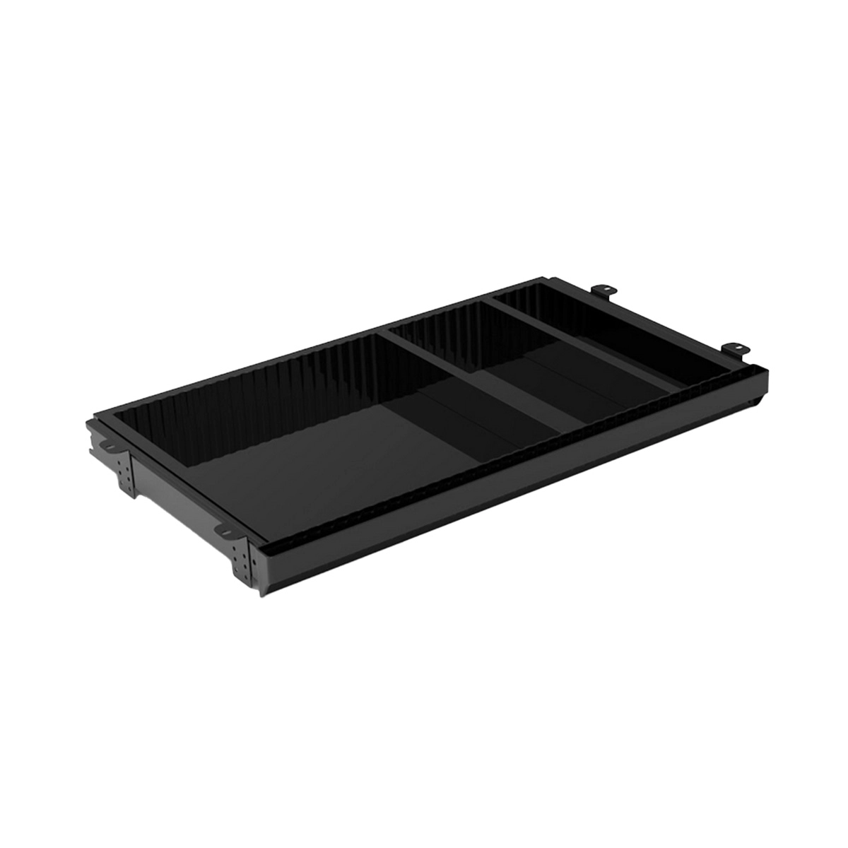 • Minimalistyczna szuflada do montażu pod blatem. To idealne rozwiązanie dla lepszej organizacji i zwiększenia przestrzeni w miejscu pracy. W kolorze czarnym. 3 przegródki. Wymiary: 560x335x47mm. Udźwig: 5 kg.