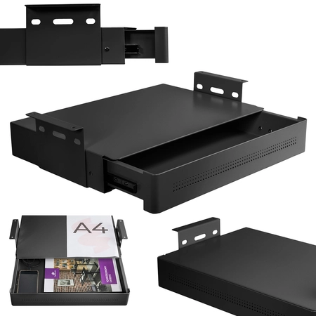 • Szuflada Spacetronik SPB143 to funkcjonalne rozwiązanie do organizacji przestrzeni roboczej. Montowana pod biurkiem, posiada dodatkową półkę i cichy mechanizm. Solidna stalowa konstrukcja i łatwy montaż.