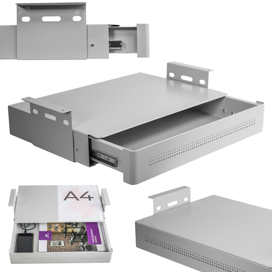 szuflada podbiurkowa, organizer do biurka, szuflada z półką, szuflada pod blat, biurowy organizer Spacetronik, szuflada montowana do biurka, ergonomiczny organizer, organizer do stanowiska pracy