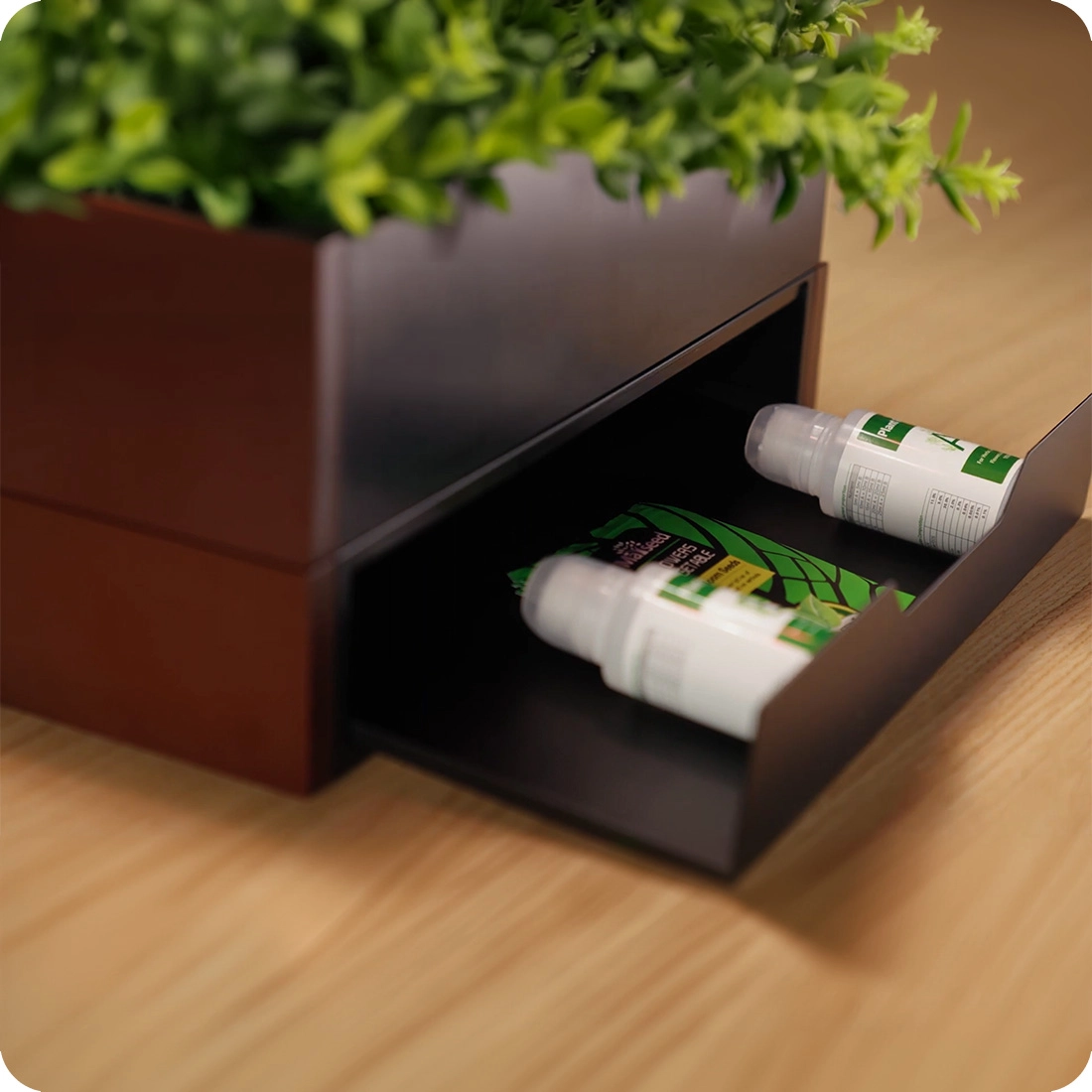 W celu zapewnienia Ci jak największej wygody szuflada Spacetronik SPGC23 jest kompatybilna z innymi urządzeniami. Rozpoczynając od siebie samej. Możesz bez problemu składować na sobie kilka takich samych szuflad, zwiększając tym samym przestrzeń na akcesoria. Dodatkowo jest kompatybilna również z inteligentną doniczką SMART GARDEN Spacetronik SPGC20. Dzięki temu możesz mieć zarówno doniczkę, jak i miejsce na składowanie akcesoriów do niej w tym samym miejscu. Co więcej, współgra ona również z półką ścienną SPGC21 i ruchomym stojakiem podłogowym SPGC22. Sprawia to, że możesz ustawić wszystkie swoje ogrodnicze akcesoria do donicy w jednym miejscu.