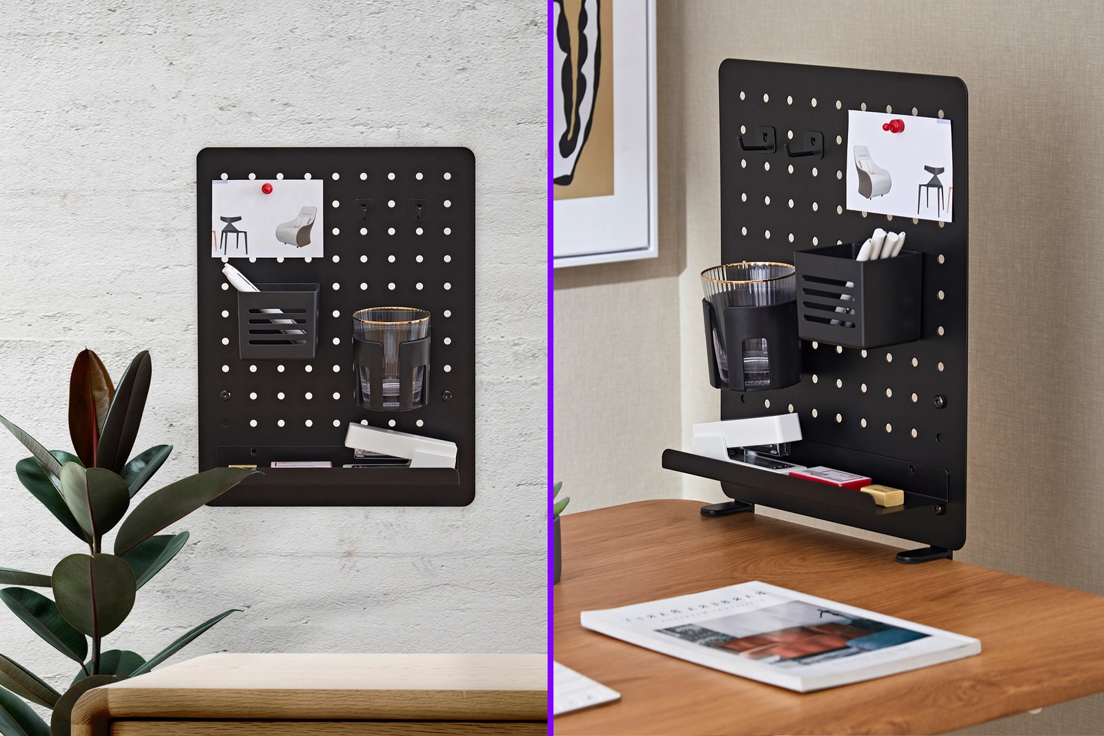 Tablica do zamontowania na biurko i ścianę Spacetronik Ergoline Holdee SPB-151B zapewnia uniwersalność. Dzieje się tak dzięki załączonym elementom wyposażenia. Uchwyt na długopisy, półka, uchwyt na kubek, magnes szpilkowy i 2 haczyki. Te elementy pozwolą Ci na znalezienie nowego miejsca dla wszystkich najpotrzebniejszych przedmiotów podczas pracy przy biurku.