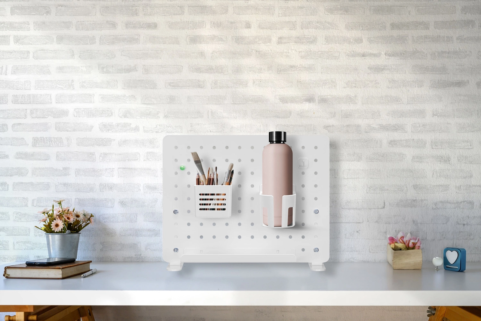 Tablica do postawienia na biurko Spacetronik Ergoline Holdee SPB-152W zapewnia uniwersalność. Dzieje się tak dzięki załączonym elementom wyposażenia. Uchwyt na długopisy, półka, uchwyt na kubek, magnes szpilkowy i 2 haczyki. Te elementy pozwolą Ci na znalezienie nowego miejsca dla wszystkich najpotrzebniejszych przedmiotów podczas pracy przy biurku.