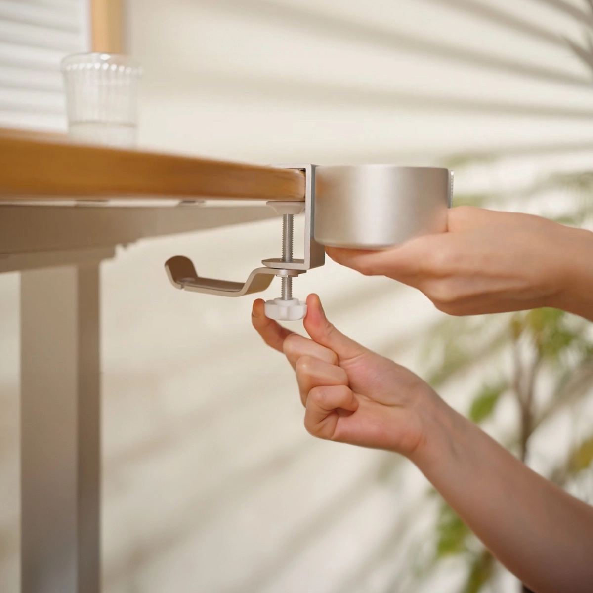 Łatwy montaż: Specjalny zacisk pozwoli Ci szybko i bez zostawiania śladów przymocować uchwyt do biurka.
