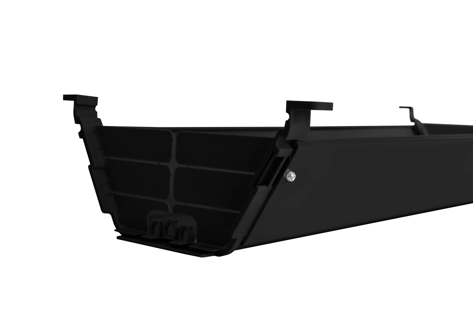Organizer SPK-524B możesz wydłużyć, łącząc kilka segmentów w jeden długi kanał kablowy. Specjalne zakończenia z otworami montażowymi umożliwiają solidne i stabilne połączenie bez luzów i przesunięć. Rozwiązanie idealne do większych stanowisk lub biurek typu bench.