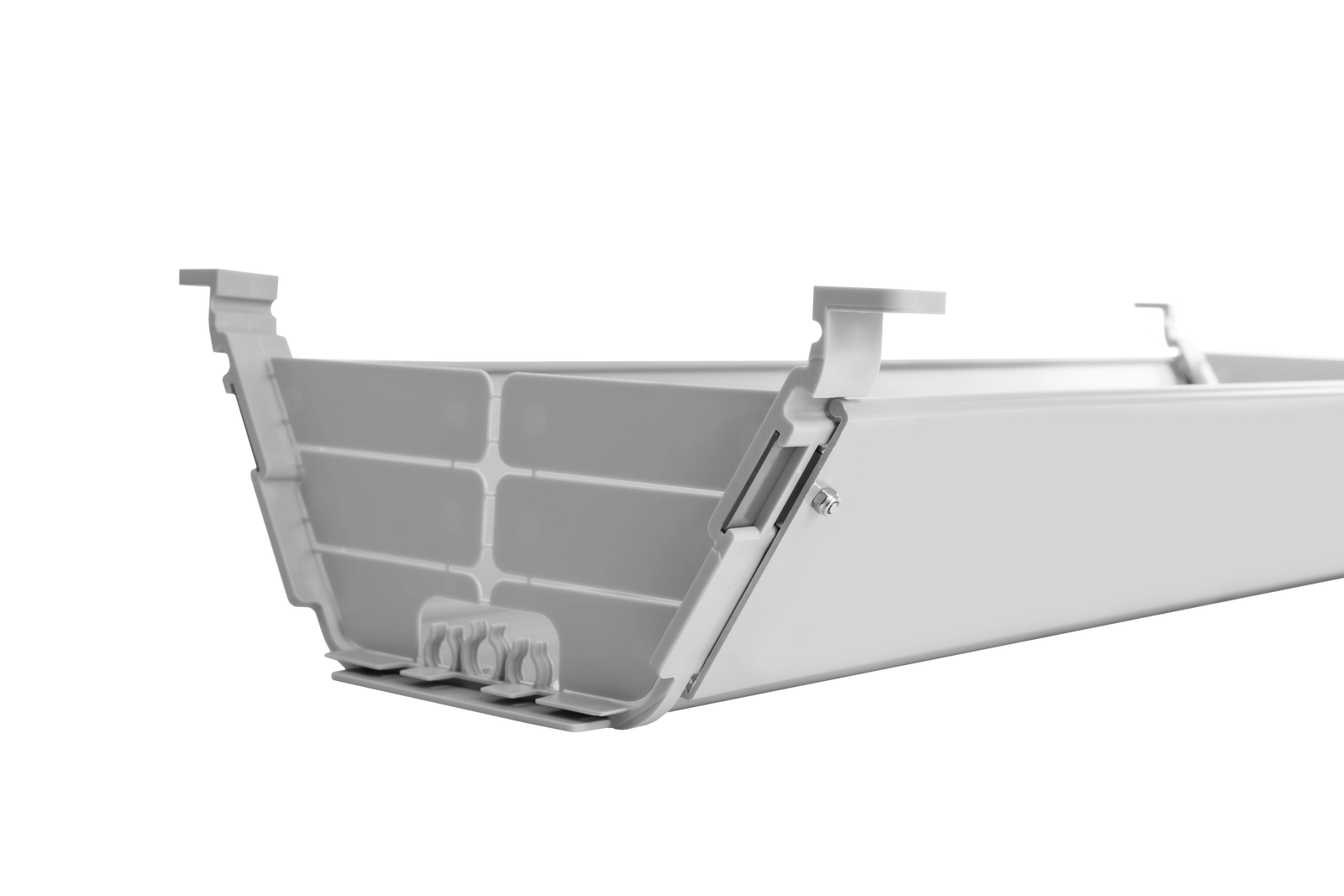Organizer SPK-524G możesz wydłużyć, łącząc kilka segmentów w jeden długi kanał kablowy. Specjalne zakończenia z otworami montażowymi umożliwiają solidne i stabilne połączenie bez luzów i przesunięć. Rozwiązanie idealne do większych stanowisk lub biurek typu bench.