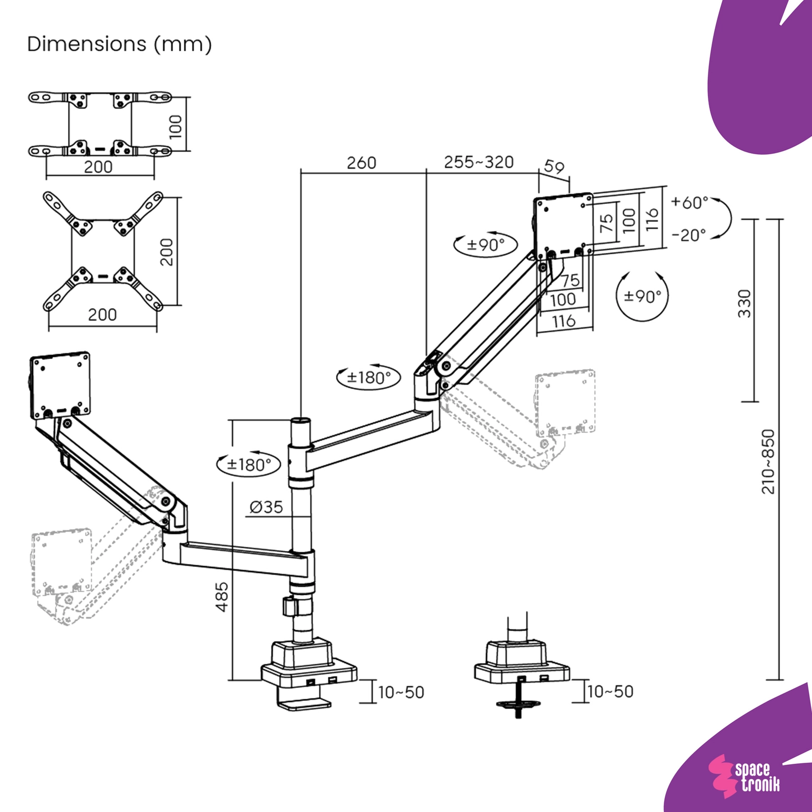 Uchwyt na 2 monitory Spacetronik SPA-H222