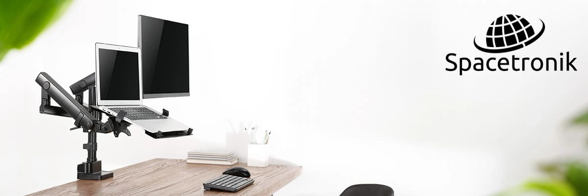 Nieodłącznym elementem wielu biurek w aktualnych czasach są stojące na nich monitory. Niektórzy idą nawet o krok dalej i stawiają na nich również laptopa. Jak możesz sobie wyobrazić, mocno ogranicza to przestrzeń na blacie. Przestrzeń, która podczas codziennego użytkowania jest niezbędna, by móc wydajnie korzystać z biurka. Czujesz, że jest to problem, który Cię dotyczy? Z rozwiązaniem przychodzi uchwyt na monitor i laptopa Spacetronik SPA-H121! Bez problemu przymocujesz go do krawędzi biurka. Tym samym monitor i laptop będą znajdowały się nad biurkiem. Zyskasz dzięki temu cenną przestrzeń roboczą.