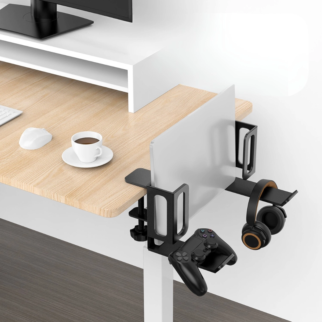 Uchwyt podbiurkowy 2w1 SPB-026B pozwala nadać Twojemu stanowisku pracy jasne reguły. Laptop i słuchawki mają swoje dedykowane miejsce, a na blacie zostaje przestrzeń na to, co naprawdę ważne. Mniej bałaganu oznacza mniej rozproszeń, a to przekłada się na większą produktywność i przyjemność z codziennej pracy lub gamingu.