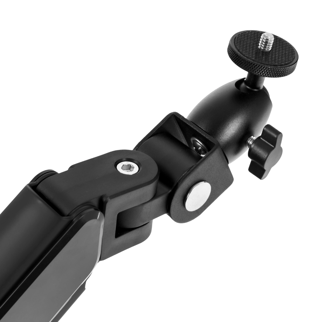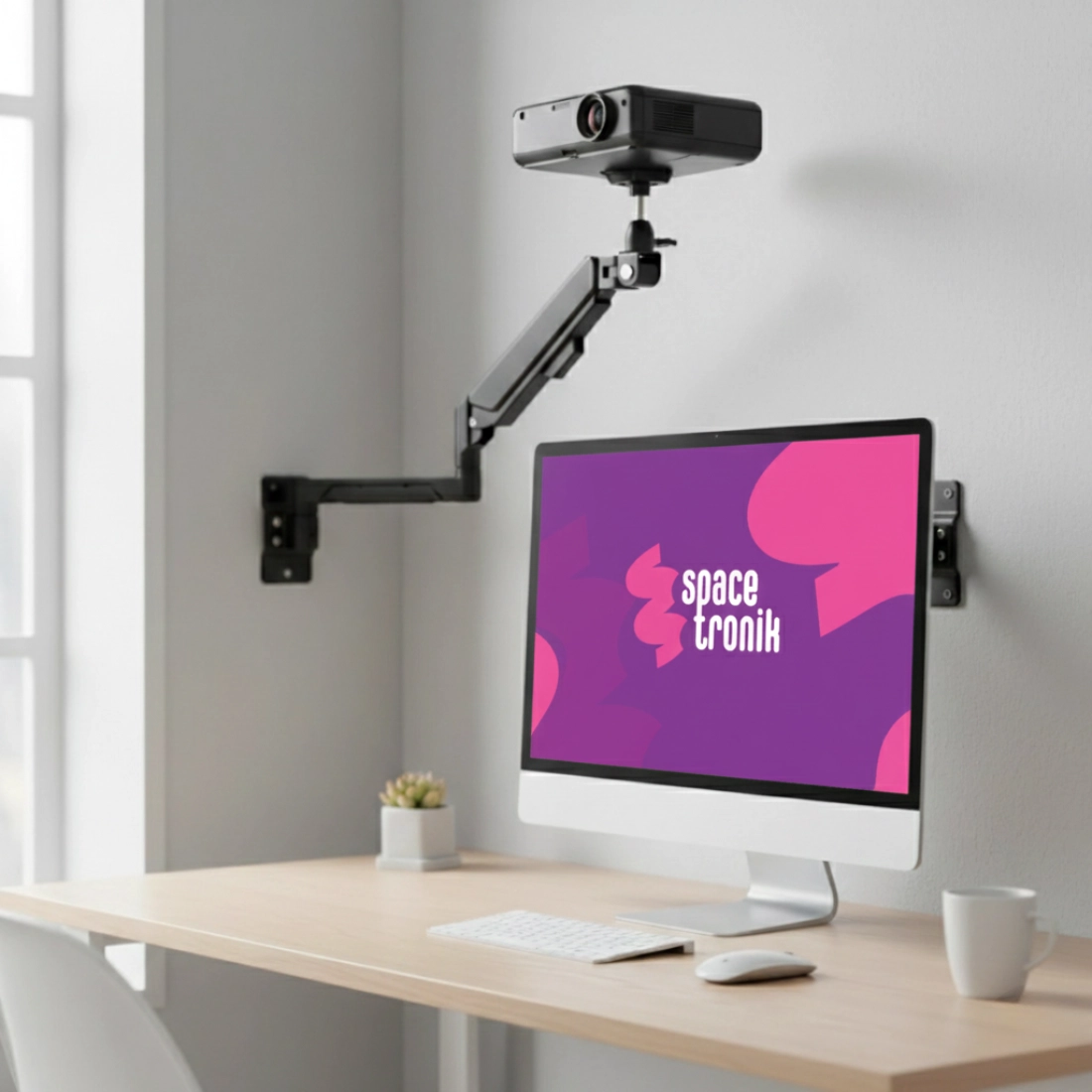 Szybko przepniesz monitor (VESA 75×75/100×100) lub projektor/aparat (gwint 1/4″) na tym samym ramieniu. Maksimum funkcji przy minimum zajętej przestrzeni.