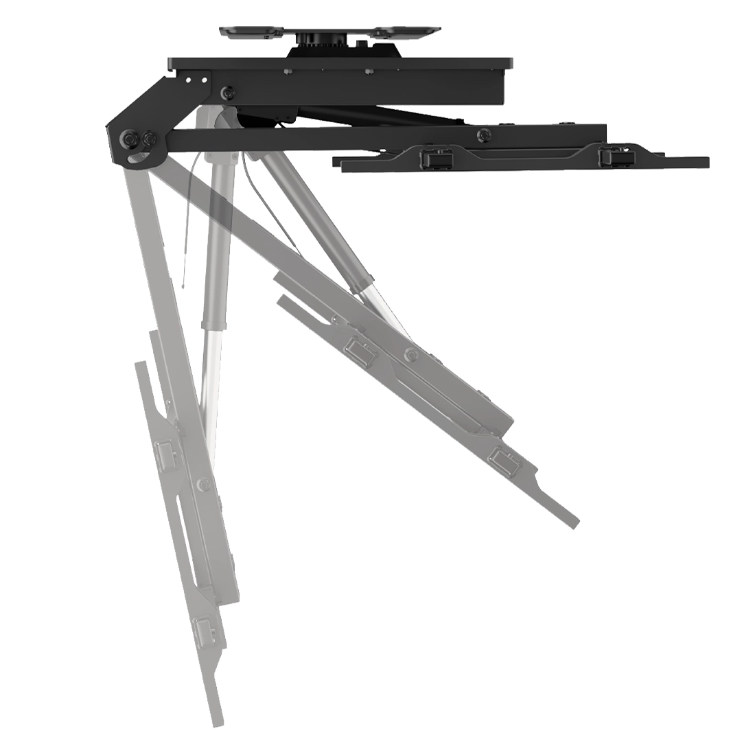 Uchwyt posiada funkcję składania do sufitu, co pozwala zaoszczędzić miejsce i chroni telewizor, gdy nie jest używany. Idealne rozwiązanie dla osób ceniących porządek, estetykę i funkcjonalność wnętrz. Po złożeniu uchwyt niemal wtapia się w sufit.