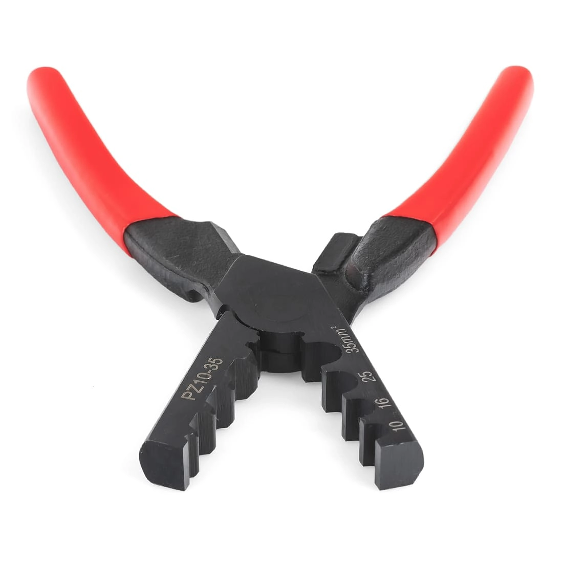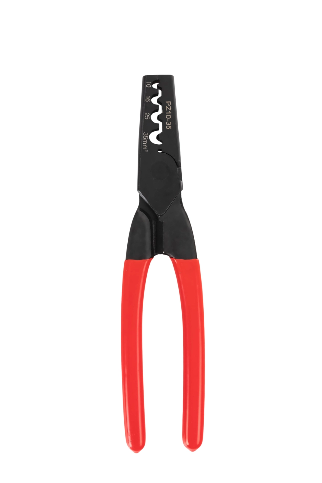 Wielofunkcyjne szczypce do tulejek na końcówkach kabli i rur CP-S1035 zapewni Ci komfort działania przy pracy z tulejkami i rurami o przekroju obwodu w zakresie 10-35mM. Antypoślizgowy uchwyt zapewni Ci pewny chwyt, dzięki czemu będziesz mógł korzystać z produktu z pełnym przekonaniem bez obawy, że wyślizgnie Ci się z ręki. Praska do tulejek CP-S1035 została zbudowana w taki sposób, by korzystać z odpowiedniego przełożenia dźwigni. Przekłada się to na fakt, że możesz przy użyciu niedużej siły, mocno zacisnąć końce przewodów. Z uwagi na to ze szczypiec do zaciskania możesz korzystać zarówno jedną jak i dwiema rękoma. Praska do przewodów nada się zarówno do tulejek izolowanych jak i nieizolowanych, pojedynczych i podwójnych. Czarno czerwony kolor tworzy przyjemny dla oka design, a długość 220 mm sprawia, że uniwersalna zaciskarka do kabli i rur CP-S1035 wygodnie i pewnie leży w dłoni.