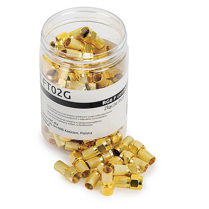 Złącze typu F pozłacane, nakręcane Spacetronik TV-FT02G - 100 szt.