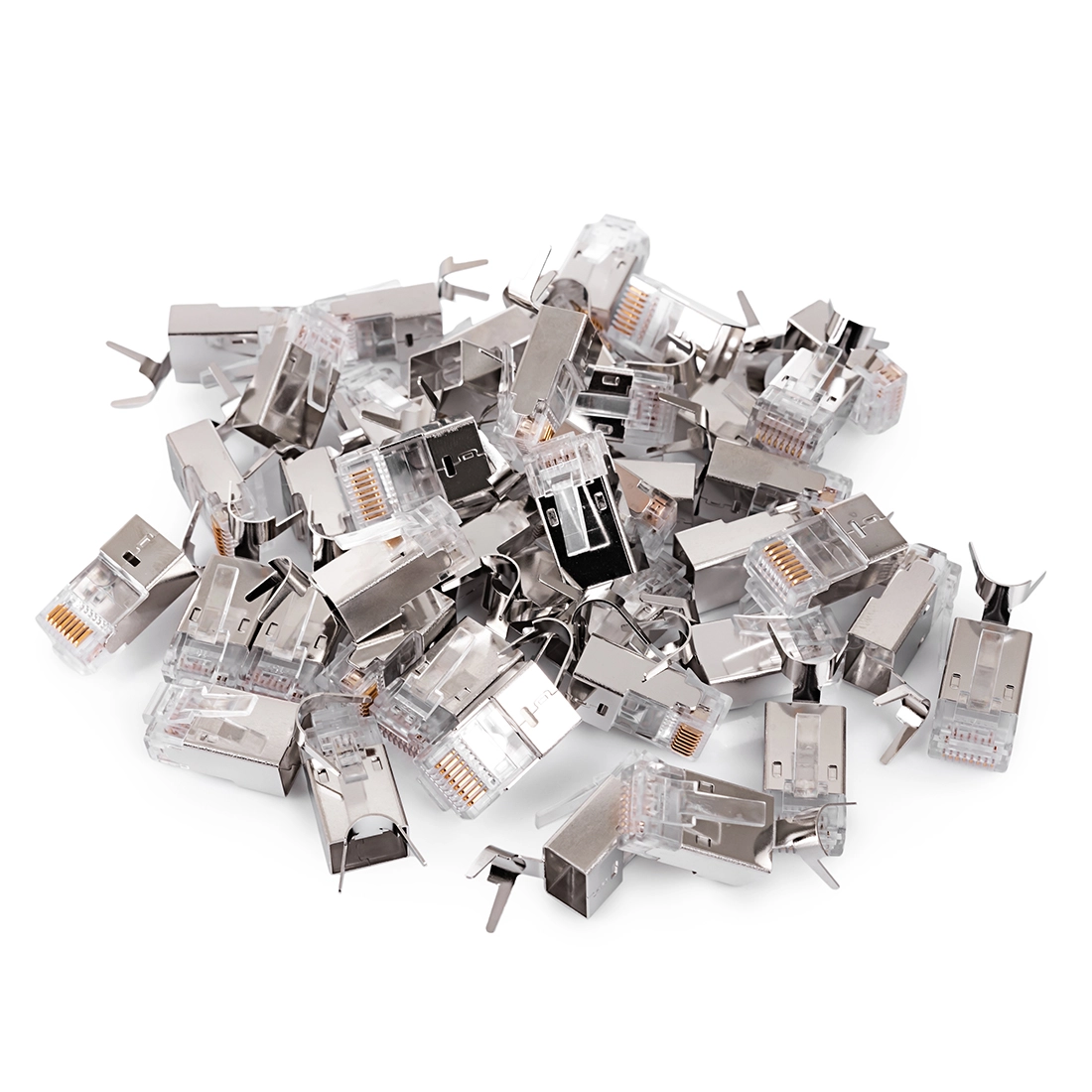 Zestaw 100 szt. standardowych ośmiostykowych wtyków RJ45 przystosowanych do zarabiania kabli teleinformatycznych LAN typu "skrętka". Końcówka jest uniwersalna - można ją stosować zarówno do kabli z żyłami z drutu, jak i linki.Piny wykonane z czystej miedzi w całości pokryte złotem, co zapewnia doskonałe przewodnictwo. Produkt wykonany w najnowszej technologii z wysokiej jakości materiałów. Zapewniają skuteczne połączenia kabli z gniazdami typu RJ45.