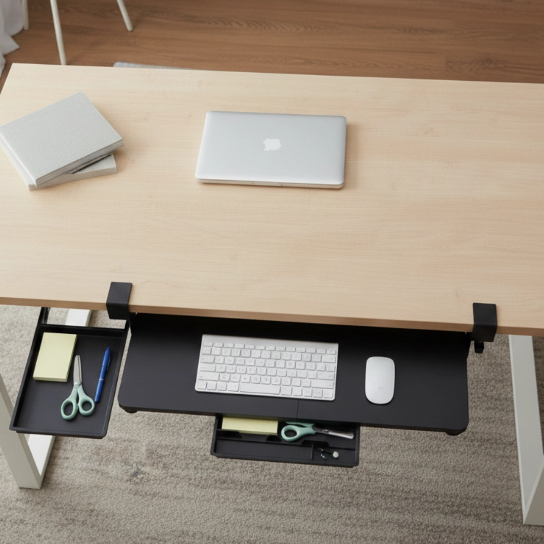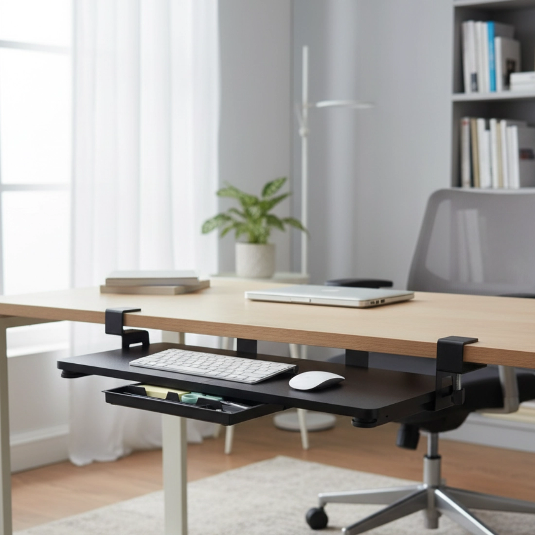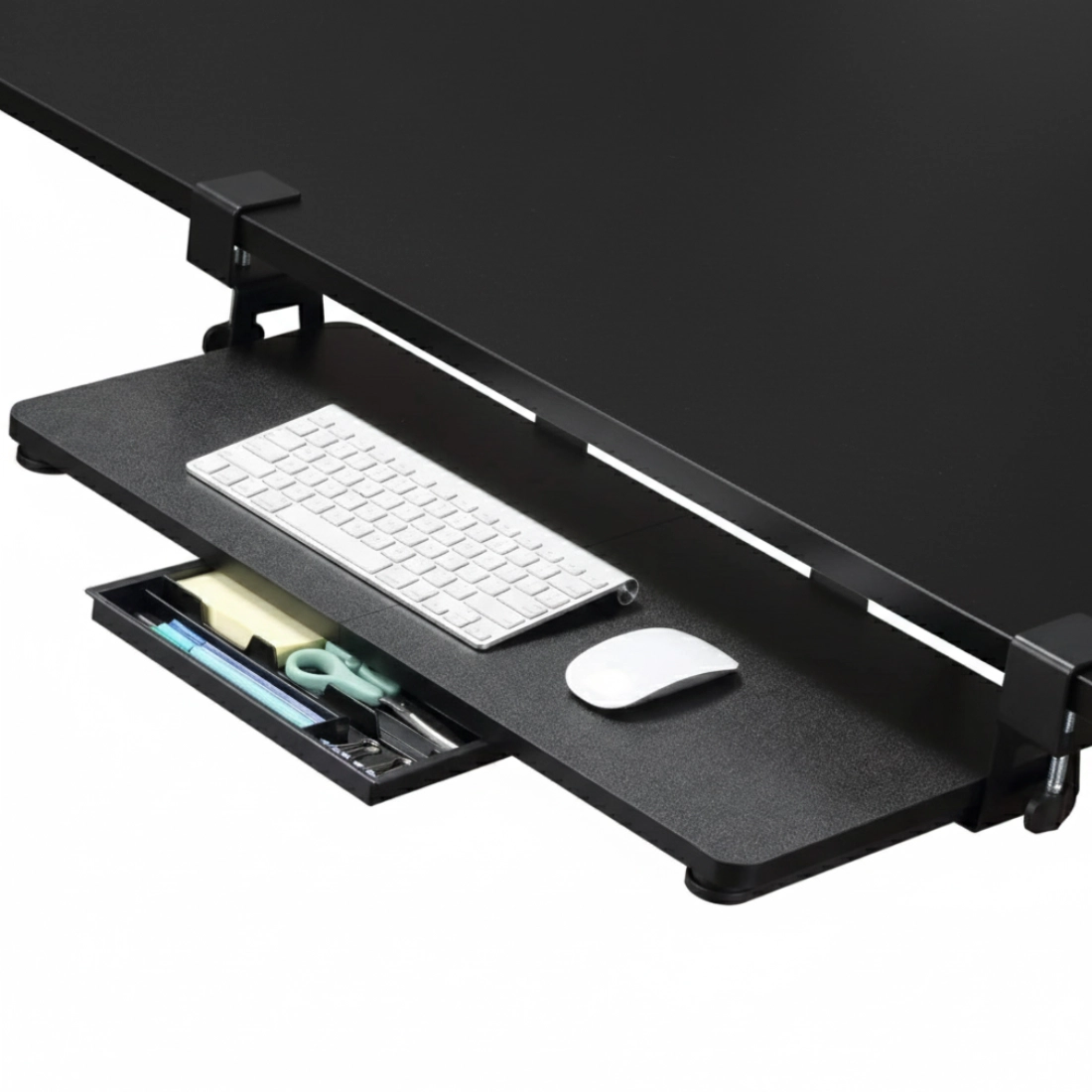 SPB-133B pomaga ustawić klawiaturę niżej niż blat, wspierając neutralną pozycję nadgarstków i redukując napięcie w ramionach oraz plecach. Kiedy potrzebujesz czystej przestrzeni, jednym ruchem wsuwasz półkę i zyskujesz więcej miejsca na dokumenty, szkice czy kawę.