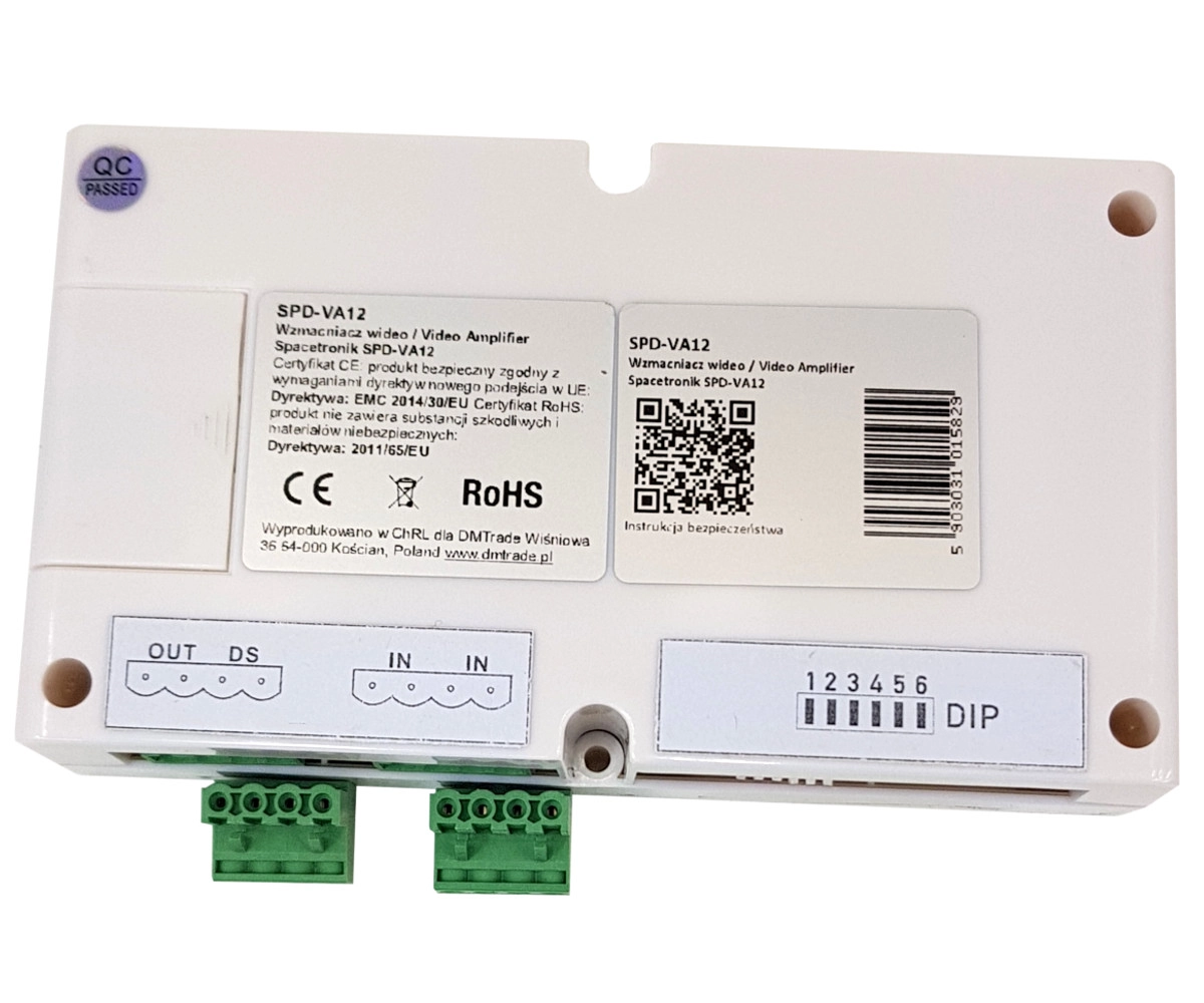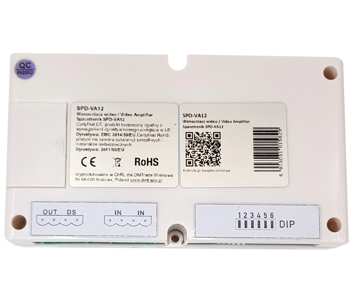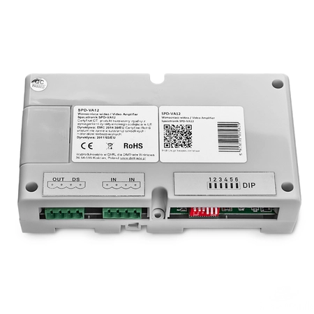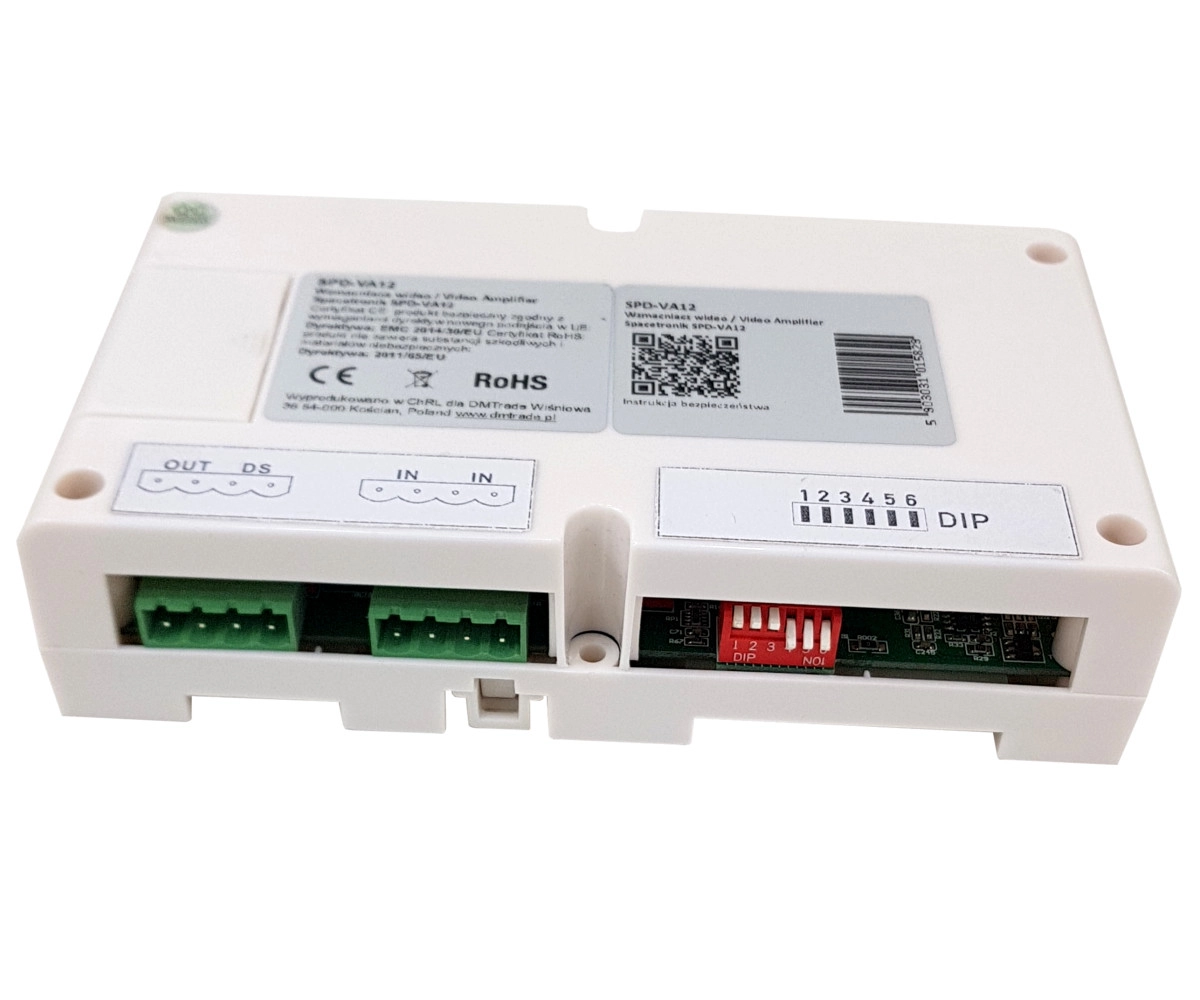Wzmacniacz wideo SPD-VA12 jest dodatkowym elementem 2-przewodowego systemu wideodomofonowego służącym do wzmocnienia sygnału przy dużych, rozbudowanych instalacjach. Zastosowanie max. 140 m od pierwszej stacji do SPD-VA12 oraz max. 140 m od ostatniego monitora.
