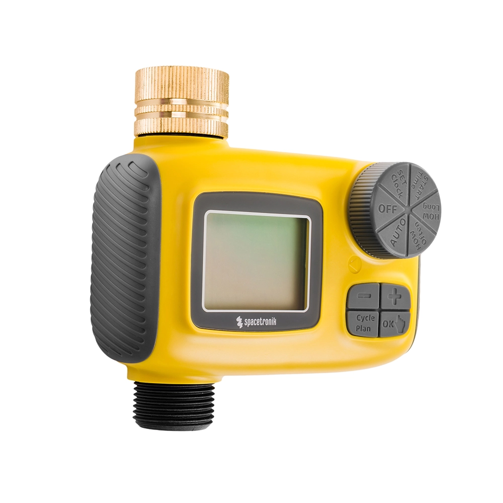 Programowanie systemu Spacetronik SPGC41 jest proste i szybkie dzięki dużemu, czytelnemu wyświetlaczowi LCD. Intuicyjny interfejs umożliwia łatwe ustalanie harmonogramów oraz korzystanie z funkcji manualnego podlewania, bez przerywania zaplanowanego programu. To pełna kontrola nad nawadnianiem Twojego ogrodu.