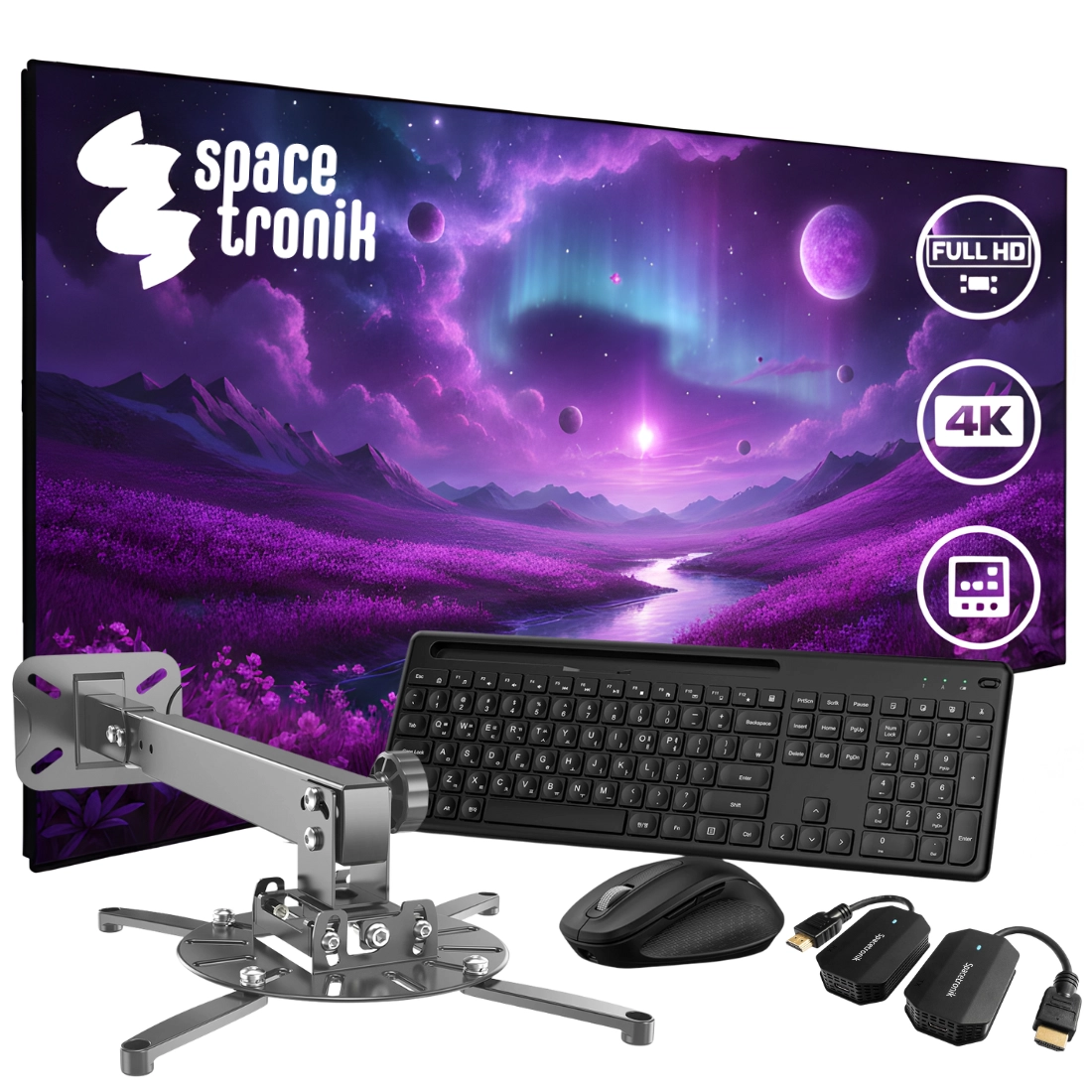 Chcesz zbudować kino domowe lub stanowisko prezentacyjne bez kompromisów? Ten zestaw łączy cztery elementy, które razem robią robotę: ekran ramowy Spacetronik PRS-F04 100" 16:9 (ultracienka ramka 10 mm i idealnie gładka powierzchnia), uchwyt sufitowy Spacetronik SPA-P02B (stabilny montaż i maskowanie kabli), bezprzewodowy transmiter HDMI Spacetronik SPH-W32 (Full HD do 30 m) oraz zestaw klawiatury i myszki Spacetronik SP-RCA20 (obsługa do 3 urządzeń i wygodne sterowanie także Smart TV). Efekt: porządek, wygoda i świetny obraz.
