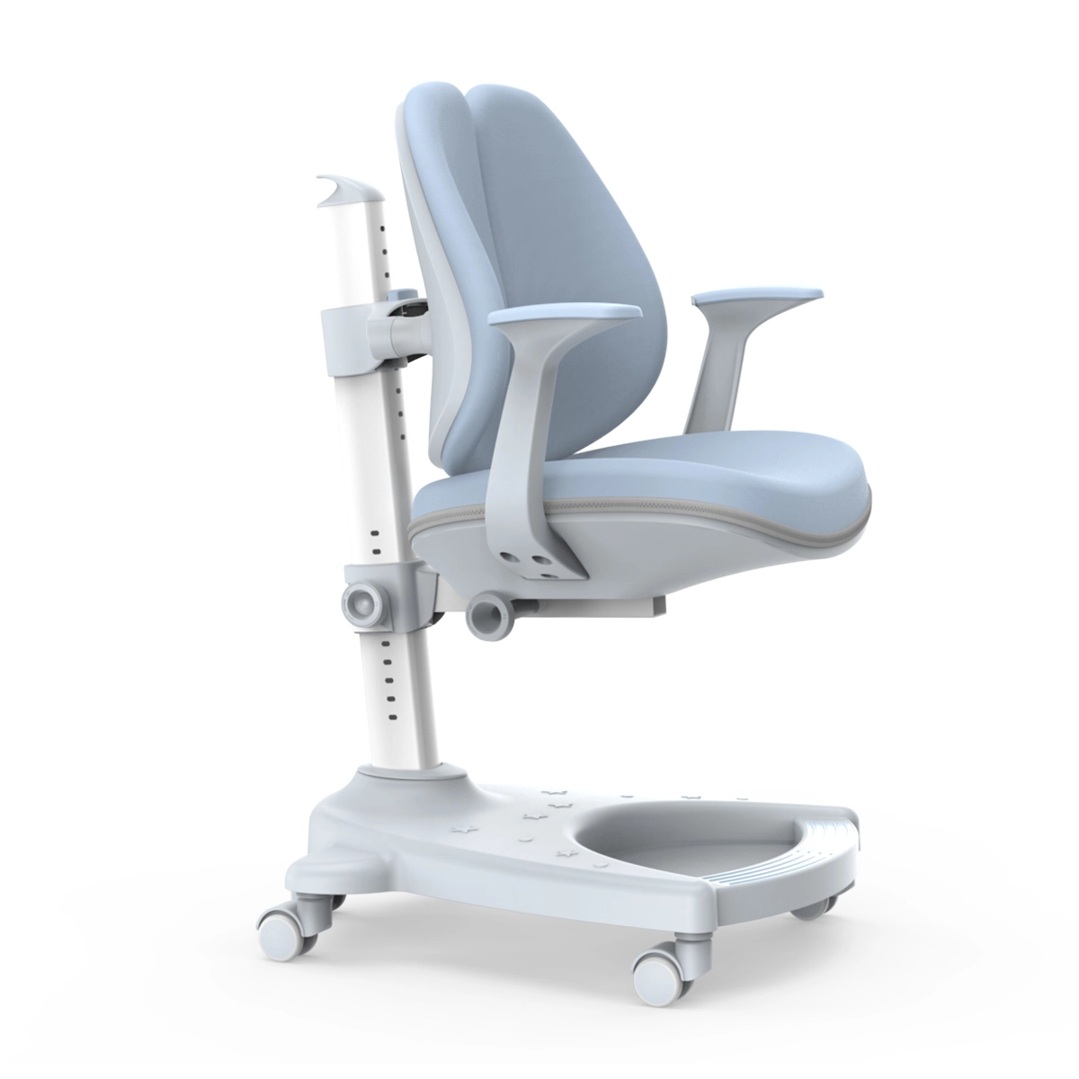 Pozwala dopasować wysokość siedziska do wzrostu dziecka i wysokości biurka