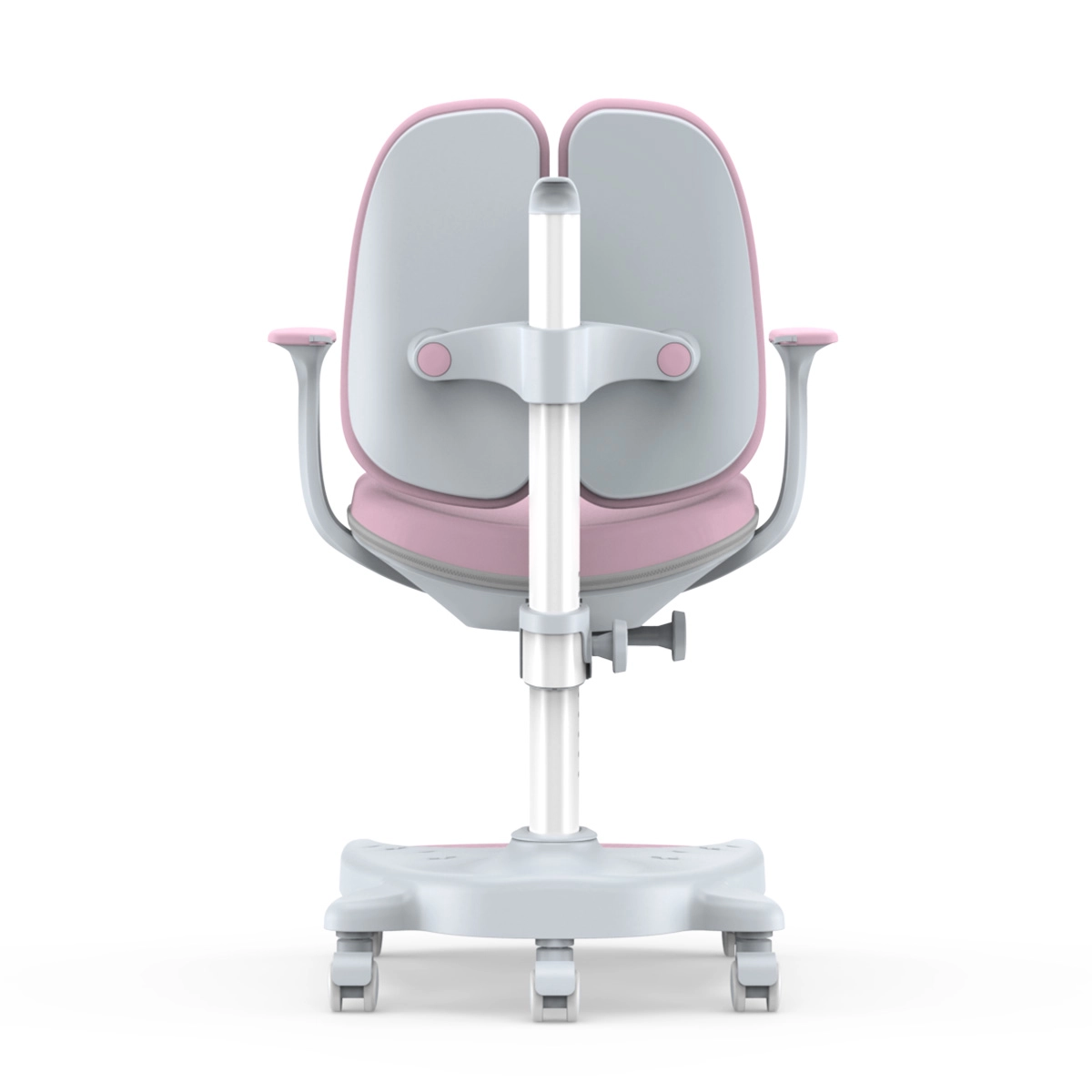 Krzesło w kolorze różowym świetnie wpasuje się w zestaw, który proponujemy. Estetyczny wygląd to nie wszystko - największą zaletą jest ergonomiczny kształt specjalnie opracowanego dwuczęściowego oparcia i siedziska. Fotel został zaprojektowany tak, aby dbał o zdrowie kręgosłupa pociechy podczas nauki przy biurku. Dodatkowo mechanizm blokady kółek zabezpiecza przed przypadkowym przemieszczaniem się krzesła, co pozwoli bardziej skupić się na nauce i zabawie bez zbędnego rozpraszania uwagi.