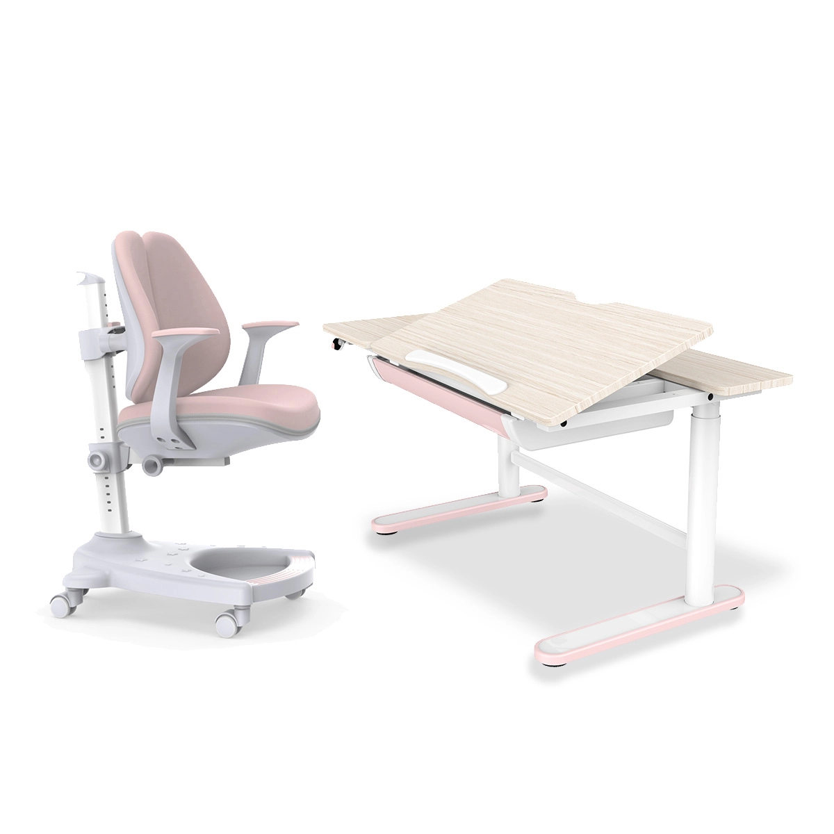 Zestaw - ergonomiczne krzesło do biurka dla dziecka i regulowane elektryczne biurko dziecięce 112x60 cm Spacetronik XD (biały/różowy)