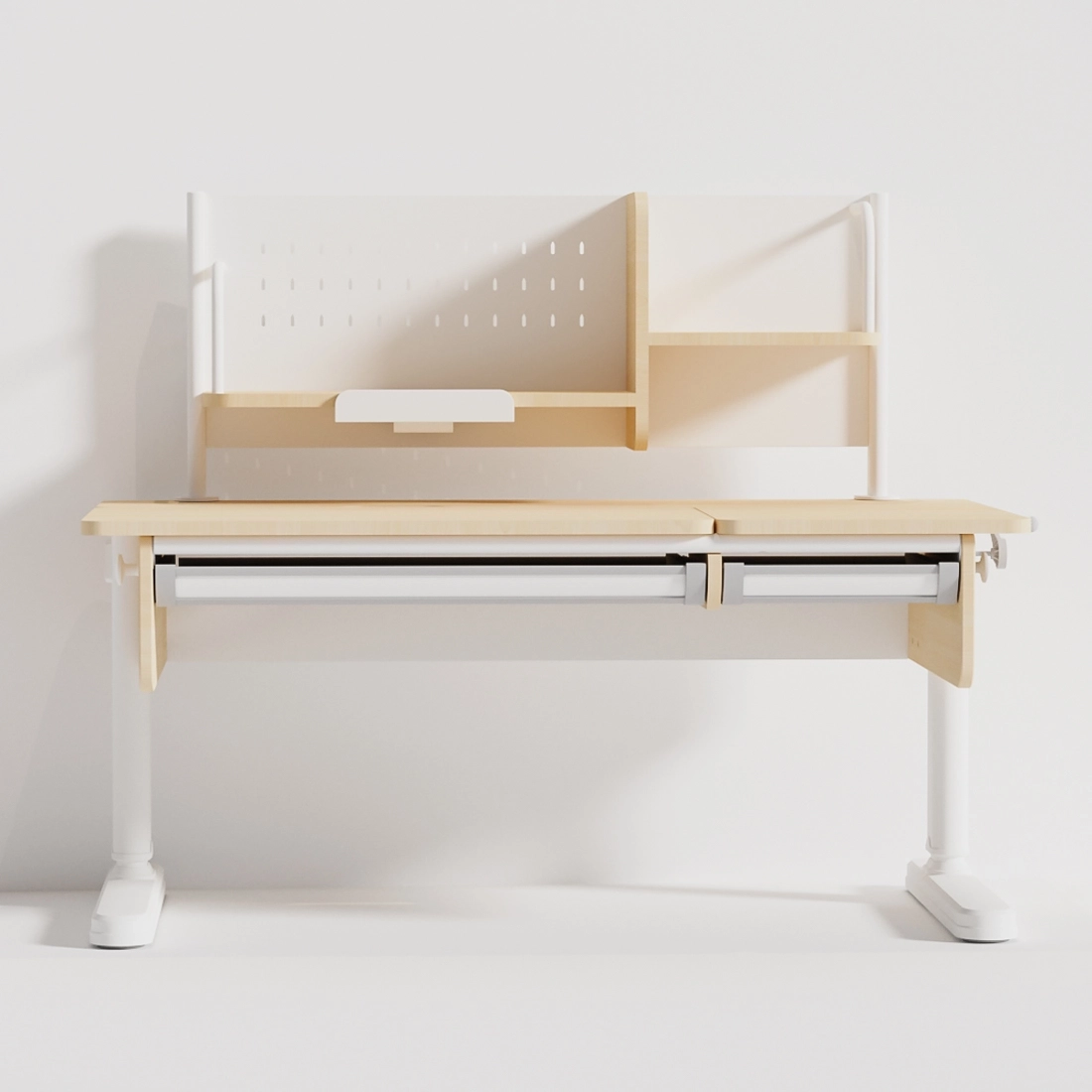 To rozwiązanie stworzone do codziennej nauki, rysowania i pracy przy komputerze. Regulowany blat wspiera prawidłową postawę, a dodatkowe półki i perforowana tablica pozwalają trzymać potrzebne rzeczy „pod ręką” – bez bałaganu na biurku.
