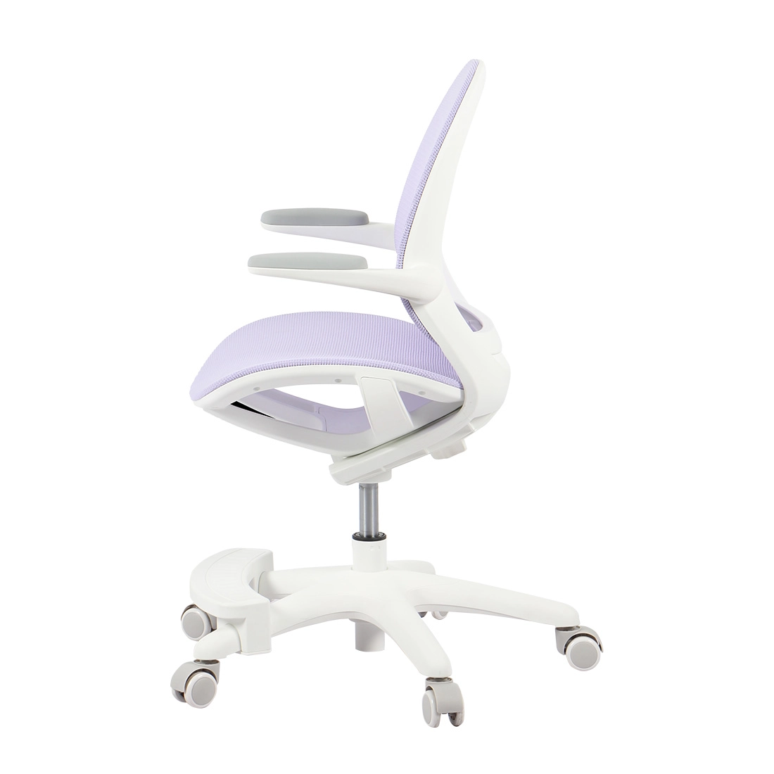 SPC-XD-03 zapewnia stabilna pozycje – kólka grawitacyjne blokuja sie, gdy dziecko siedzi, ograniczajac niechciane ruchy. Siatka nylonowa poprawia wentylacje, a podlokietniki z regulacja podnoszenia/opuszczania pomagaja ulozyc rece ergonomicznie i wsunac krzeslo pod blat po nauce. Model dostepny w kolorach: kremowy, niebieski, turkusowy, fioletowy.