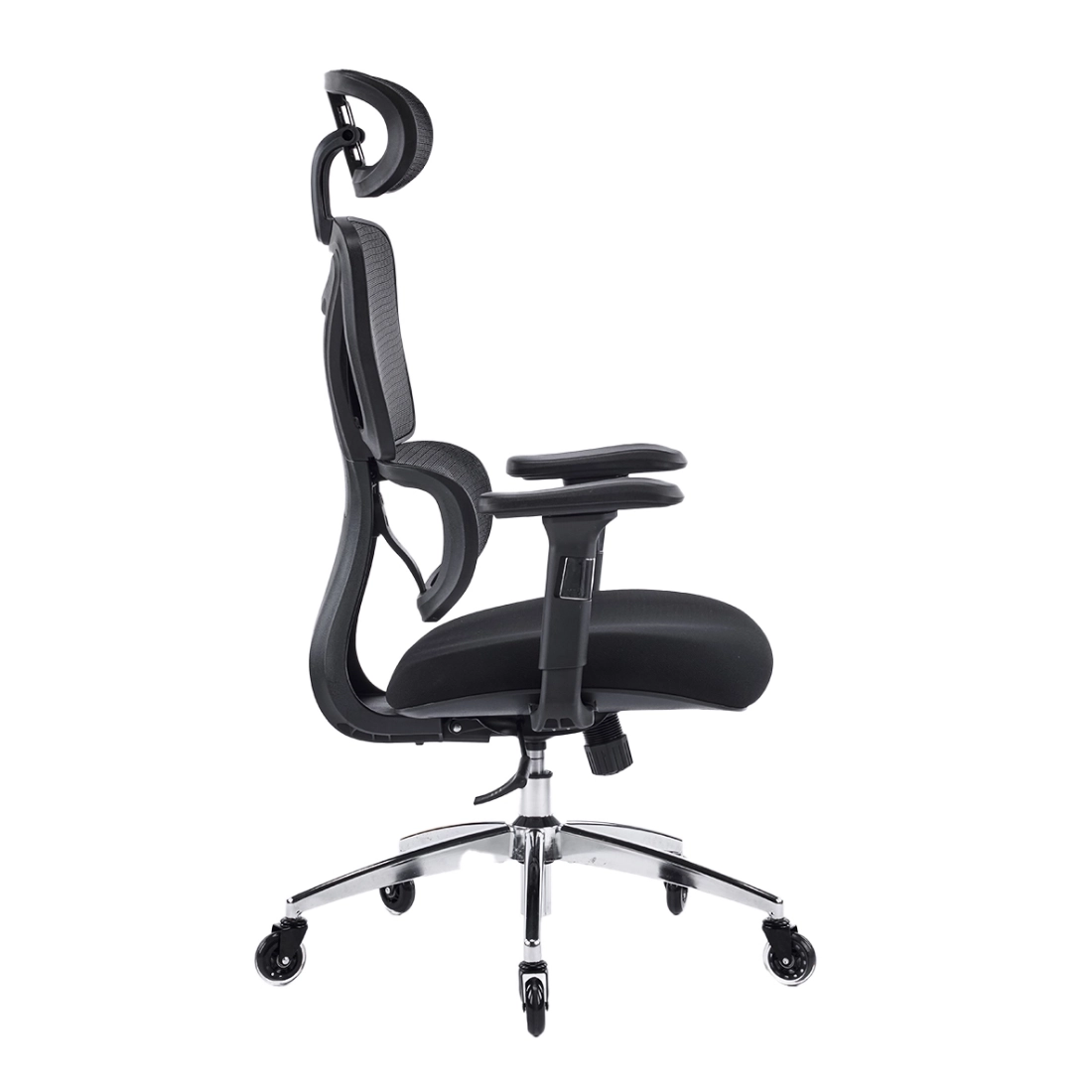 Siatkowe oparcie wspiera wentylację, a regulacje (m.in. 2D zagłówek, 4D podłokietniki i podparcie lędźwiowe) ułatwiają ułożenie ciała w naturalnej pozycji.