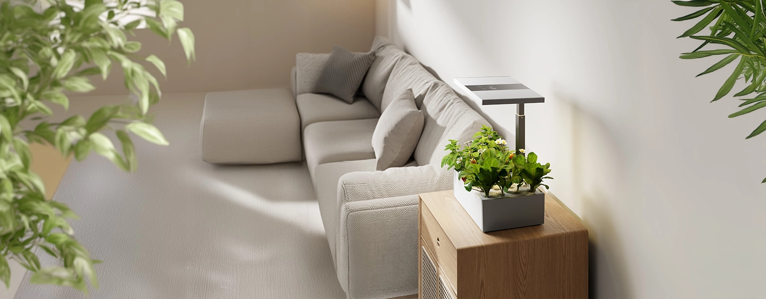 Doniczka została wyposażona w wysokiej jakości lampę LED, której wysokość możesz dowolnie regulować w zakresie: 218-634 mm (8.6"-25").