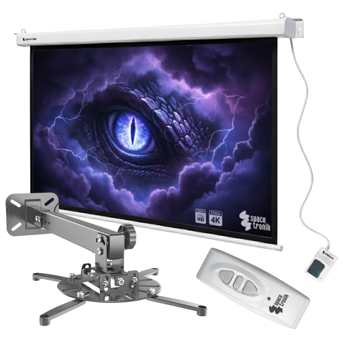 Zestaw: Elektryczny ekran projekcyjny 4K HD PVC EASY VIEW (rozmiar i format obrazu do wyboru) + uchwyt sufitowy do projektora Spacetronik SPA-P02B
