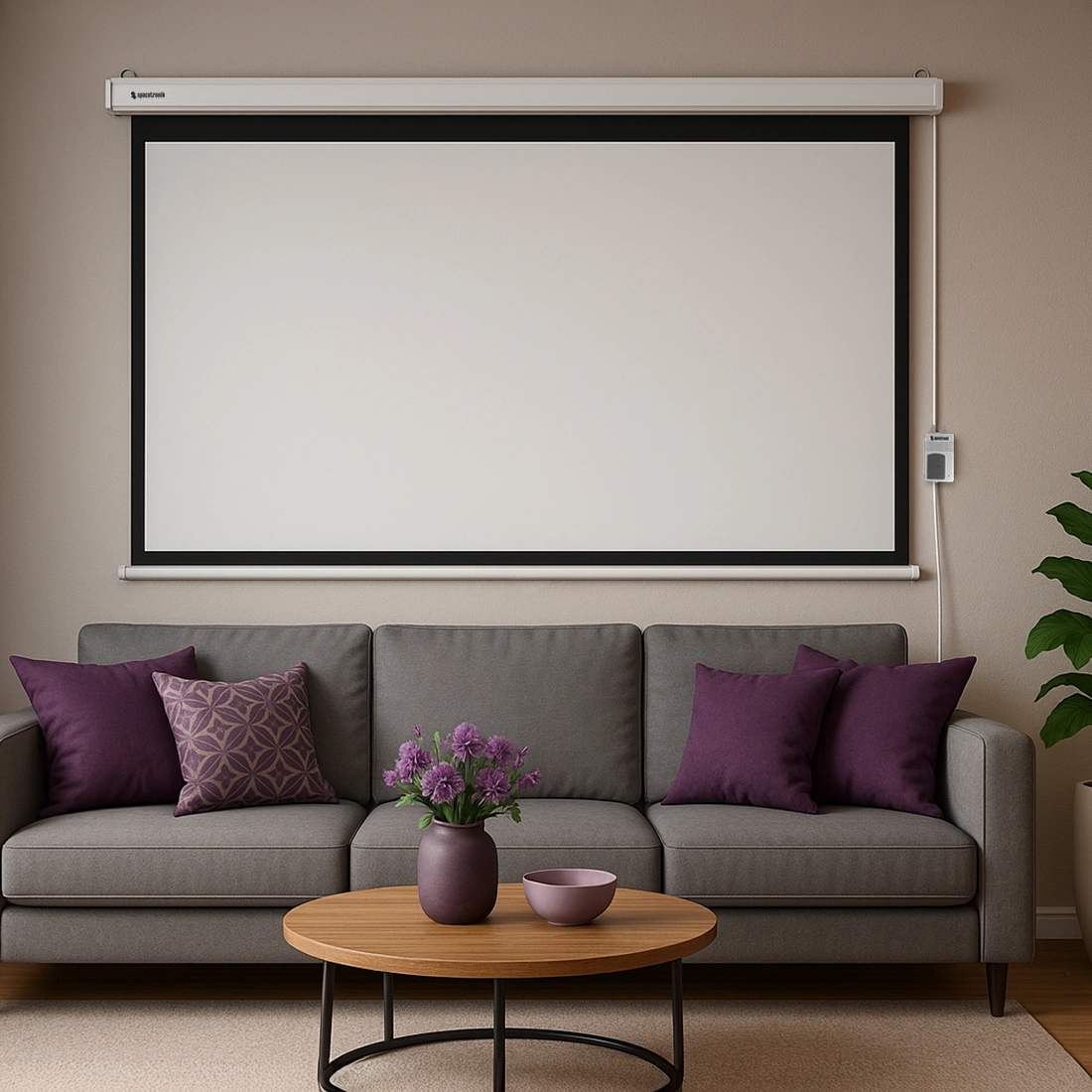 Elektryczny ekran projekcyjny z materiału PVC EASY VIEW pozwala zamienić zwykły salon lub salę konferencyjną w prawdziwe kino. Wystarczy jedno naciśnięcie przycisku, aby płynnie opuścić powierzchnię projekcyjną. Wysoka rozdzielczość 4K HD, wzmocnienie 1.1 oraz szeroki kąt widzenia 165° gwarantują czytelny, jasny i wyraźny obraz dla wszystkich widzów, niezależnie od miejsca, w którym siedzą.