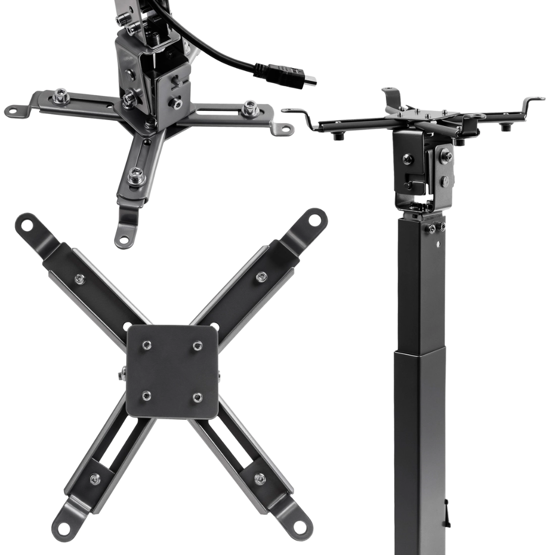 Uchwyt sufitowy do projektora SPA-P01B to praktyczne rozwiązanie, które pozwala uporządkować przestrzeń i uzyskać idealny kąt projekcji. Wykonany z wysokiej jakości stali w czarnym kolorze, oferuje maksymalny udźwig do 20 kg. Cztery montażowe nóżki dbają o solidne przymocowanie do ściany lub sufitu, a regulowana wysokość, pochył i obrót umożliwiają wykorzystanie uchwytu w różnych pomieszczeniach – od salonu, przez sypialnię, po salę konferencyjną.