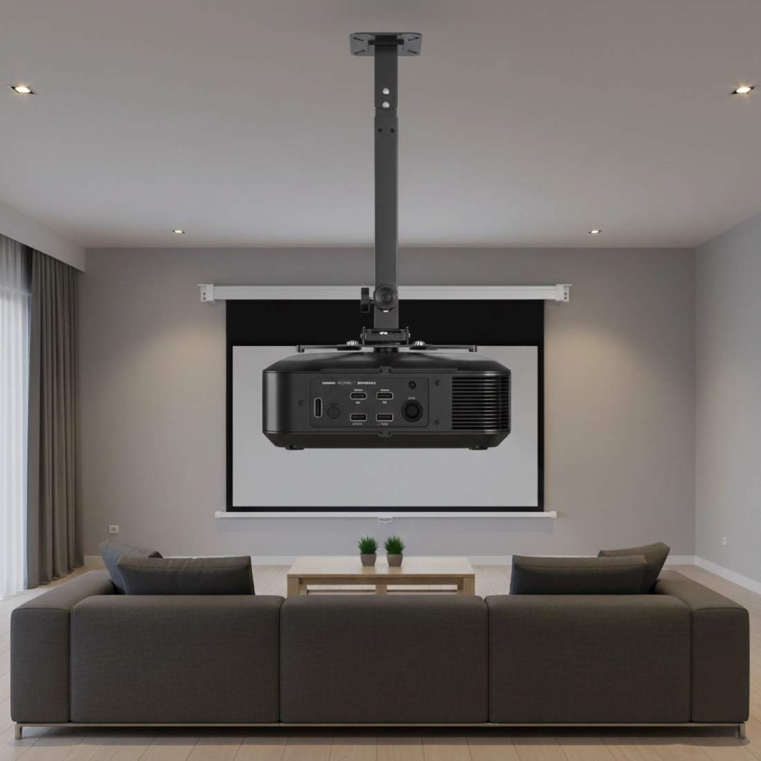 Ręczny ekran projekcyjny i uchwyt sufitowy – zestaw do kina domowego i prezentacji